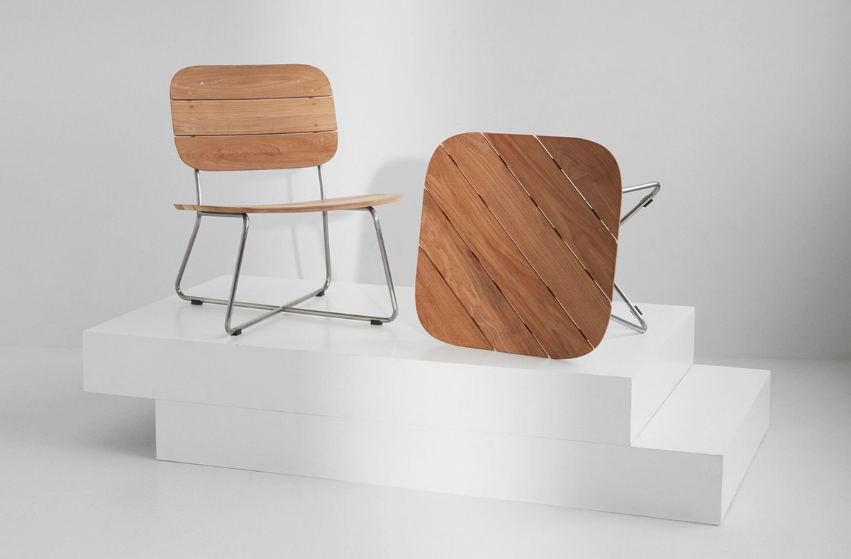 Honest materials and innovative manufacturing The Lilium series is made of just two elements: Teak and stainless steel. The teak is untreated FSC-certified wood, and the stainless-steel frame is bare, meaning every detail in the design is visible. During the production process, BIG visited the workshop to observe the construction process and make final design changes during this phase.