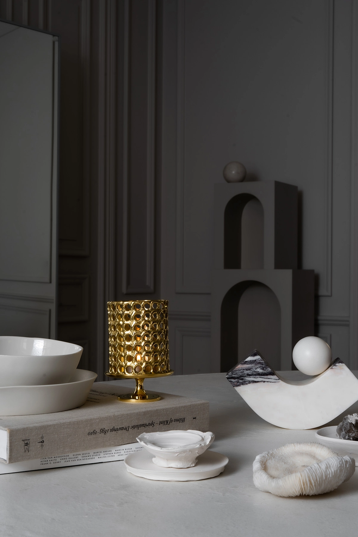 Skultuna recreates a classic, Pierre Forsell’s fantastic lantern in brass. The lantern with its iconic design language was designed in the 1960s by the silversmith and designer Pierre Forssell. Forssell was active at Skultuna Messingsbruk as a permanent designer between the years 1955-1986. The holes on the original were made with a welding flame, on this recreated lantern the holes are created during casting. Two-piece.