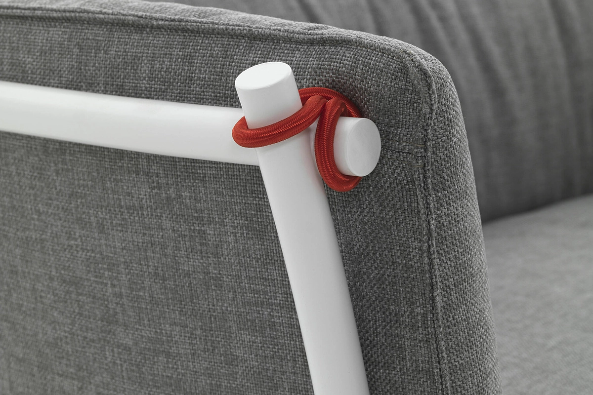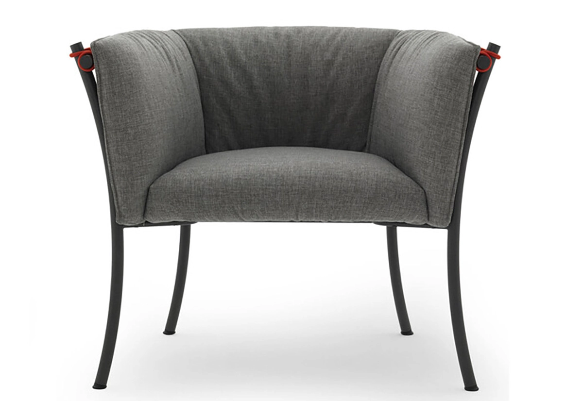 The modern armchair is characterised by a gentle curve that opens into the seating. Smeralda is a modern armchair with a slight retro design, in which the upholstered seat and backrest create a protected space. The steel frame is stark, painted matte anthracite grey, with contrasting elastic cords. Solid and balanced, it’s one of those versatile and functional designer accessories that are perfect for representing different settings.