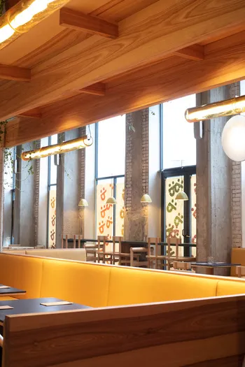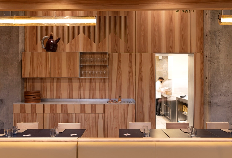 Izakaya, the informal drinking establishments of Japan, inspired the design concept of the restaurant, while the name itself – derived from Latin word ‘populus’ meaning ‘community of people’ – reflects the spirit and heart of POPL. Born out of Covid-19 and Noma’s summer pop-up, the restaurant aims to broaden the culinary horizons of the humble burger. This is subtly echoed in its design, which marries Japanese influences with Scandinavian aesthetics.