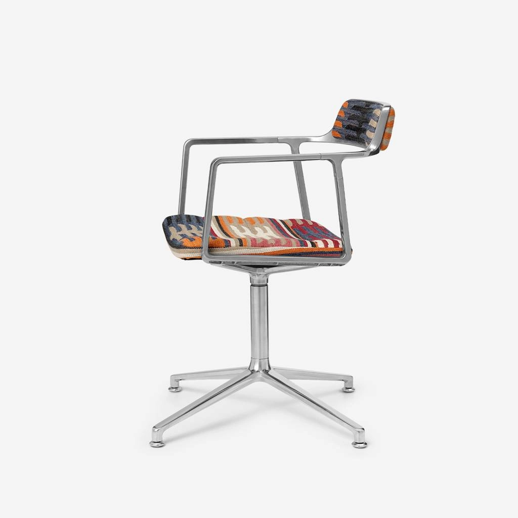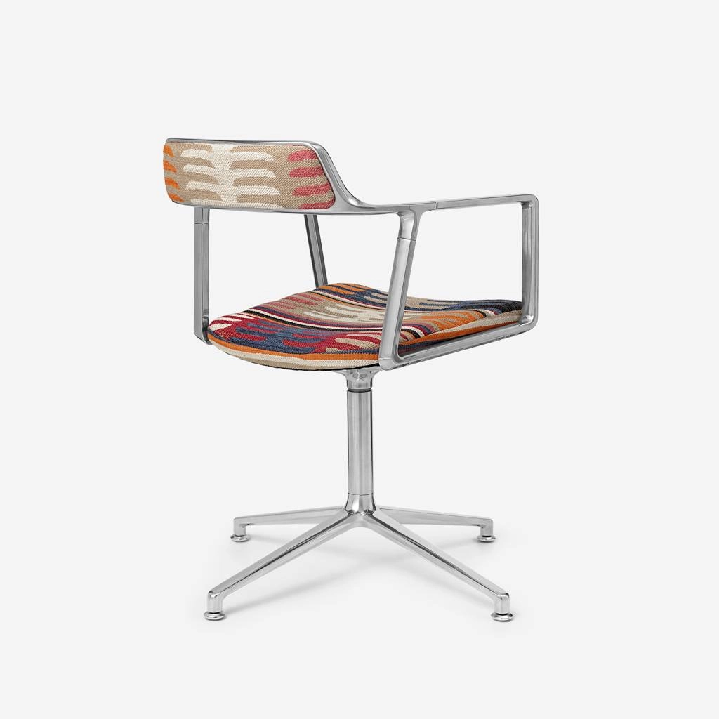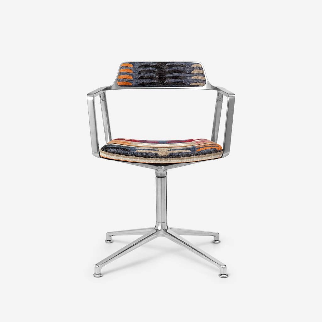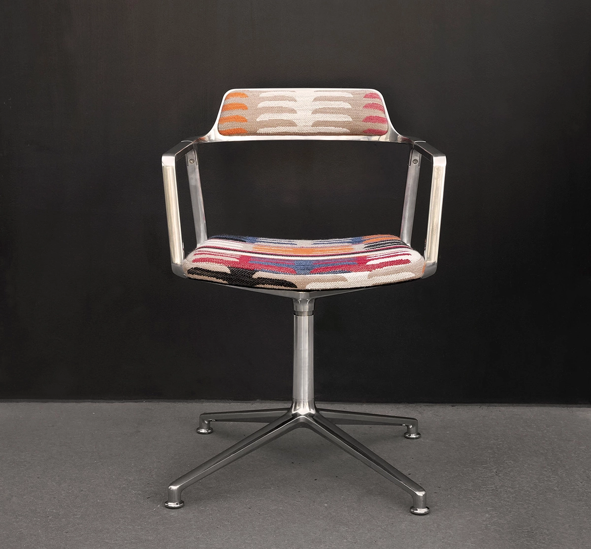 Crafted for the Vipp Todos Santos guesthouse in Mexico, this special edition Vipp Swivel chair features a vivid jacquard fabric from the renowned French textile house Pierre Frey. Chosen for its bold colours and rich textures that echo the vibrant spirit of Mexico, the graphic bayadère stripes add a radiant contrast to the chair’s industrial aluminium frame.