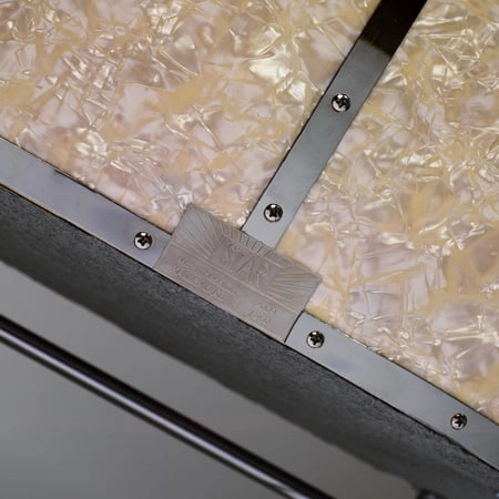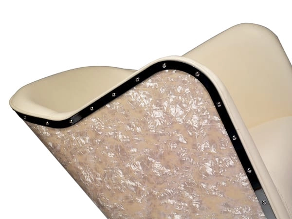 Pärlemor, kromad stålkant och underrede, läder