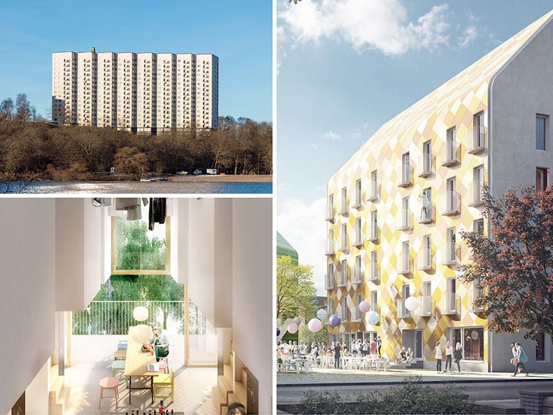 Picture top TV Erlander house or Accordion house designed by Henning Orlander. where the then Prime Minister, Tage Erlander lived. Photo: Anders Fredriksen. During TV: Multi-Bo , designed by White architects for the student housing companies, SSSB. Picture right: KomBo , concept for modern collective housing developed by the Iron Market and Utopia Architects.