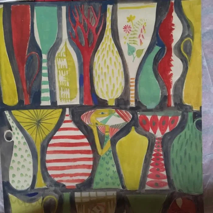 Emaljkonst. Emaljkonst var hett på 1950- och 1960-talen. Stig Lindberg var en av pionjärerna som i den slamriga badkarsfabriken skapade färgsprakande och glänsande konstverk med hjälp av ”världens vackraste geggamoja”. Han fick många efterföljare. Ett originellt exempel på Stig Lindbergs emaljkonst är de utegrillar om han gjorde på 1950-talet, de är sällsynta, men vi har lyckats att låna in en av dem från en privat samlare.