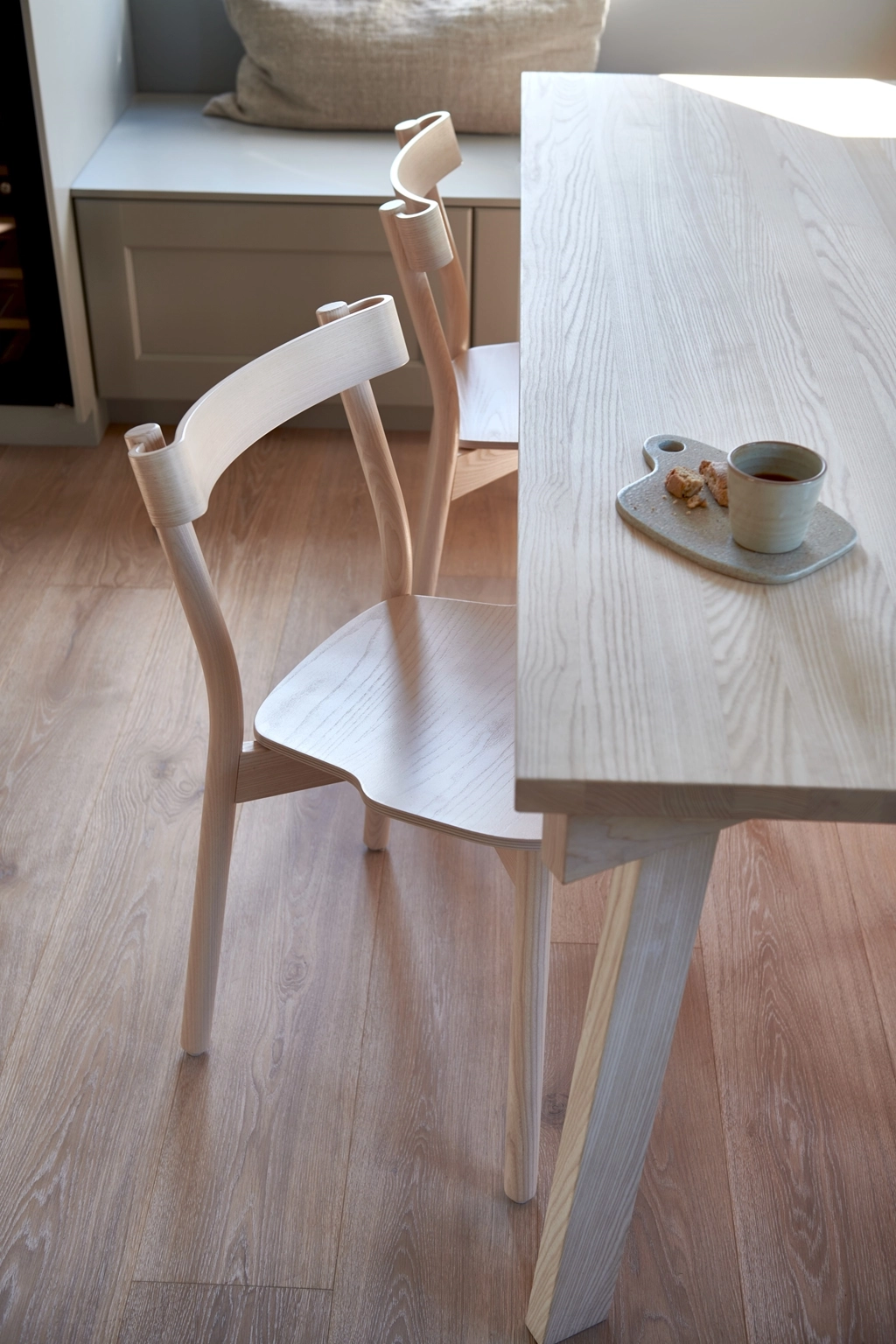 Marcel Sigel offer a unique chair all in wood thanks to an iconic twist to the backrest. Although the ash veneered birch wood is bent to the extremes at the ends, the wood seems to flow effortlessly like a strip of cloth. Or rather a piece of cloth frozen in time!