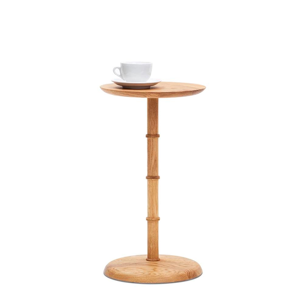 Strå is the Swedish word for Straw. Depending on situation Strå can change from a neat coffee table, a practical side table for your lap top or a slender pedestal carrying your most magnificent indoor plants. It consists of a foot, a tabletop and five parts in turned oak that one simply screw together into a tight but sculpted stem. The user decide the height by deciding how many units to shape the stem from so the table fits their purpose.