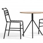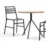 New Straw Table with three legs and three legs always reaches the ground… For indoor or outdoor use. Lacquered galvanized steel. Tabletop in solid wood or powder-lacquered outdoor grade MDF.