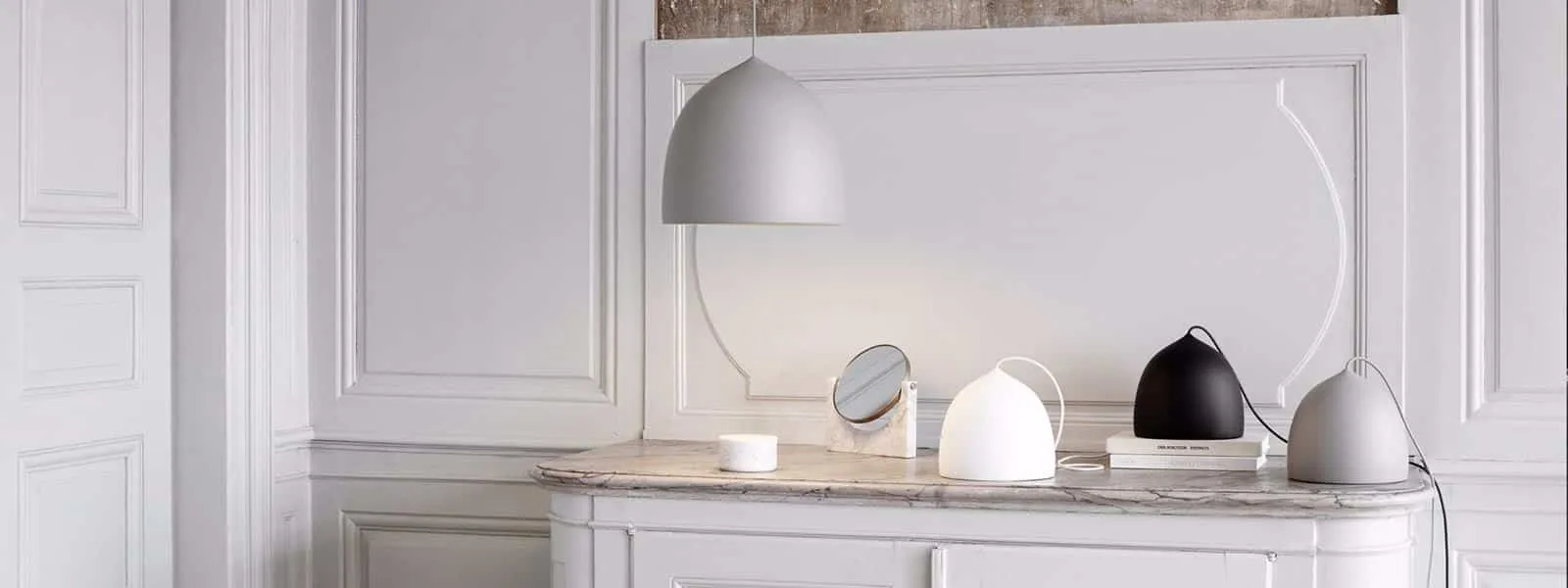 GamFratesi’s inspiration for the Suspence™ lamp series has been translating a movement into a physical shape. The shape of the lamp has been created by pulling – an elementary movement involving physical force. This tensile force is visible at the top of the lamp, where you see the little tip. Suspence™ is organic with a natural soft curve. Suspence™ pendant is designed with a monochrome look; the shade and cord are perceived as an uninterrupted whole. An infinity diffuser at the bottom of the lamp concentrates the light, prevents glare and contributes to creating an elegant optical illusion – hence the name infinity diffuser.