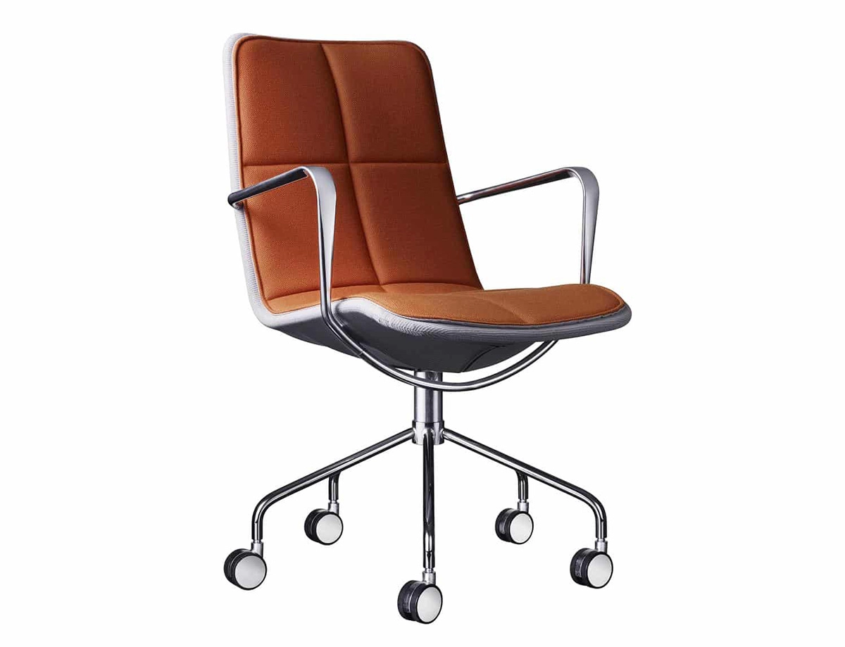 A delicate look and ingenious construction: a mesh fitted over a steel frame. This is the conference chair for warm days and long meetings – its airy construction will breathe and let you stay cool.