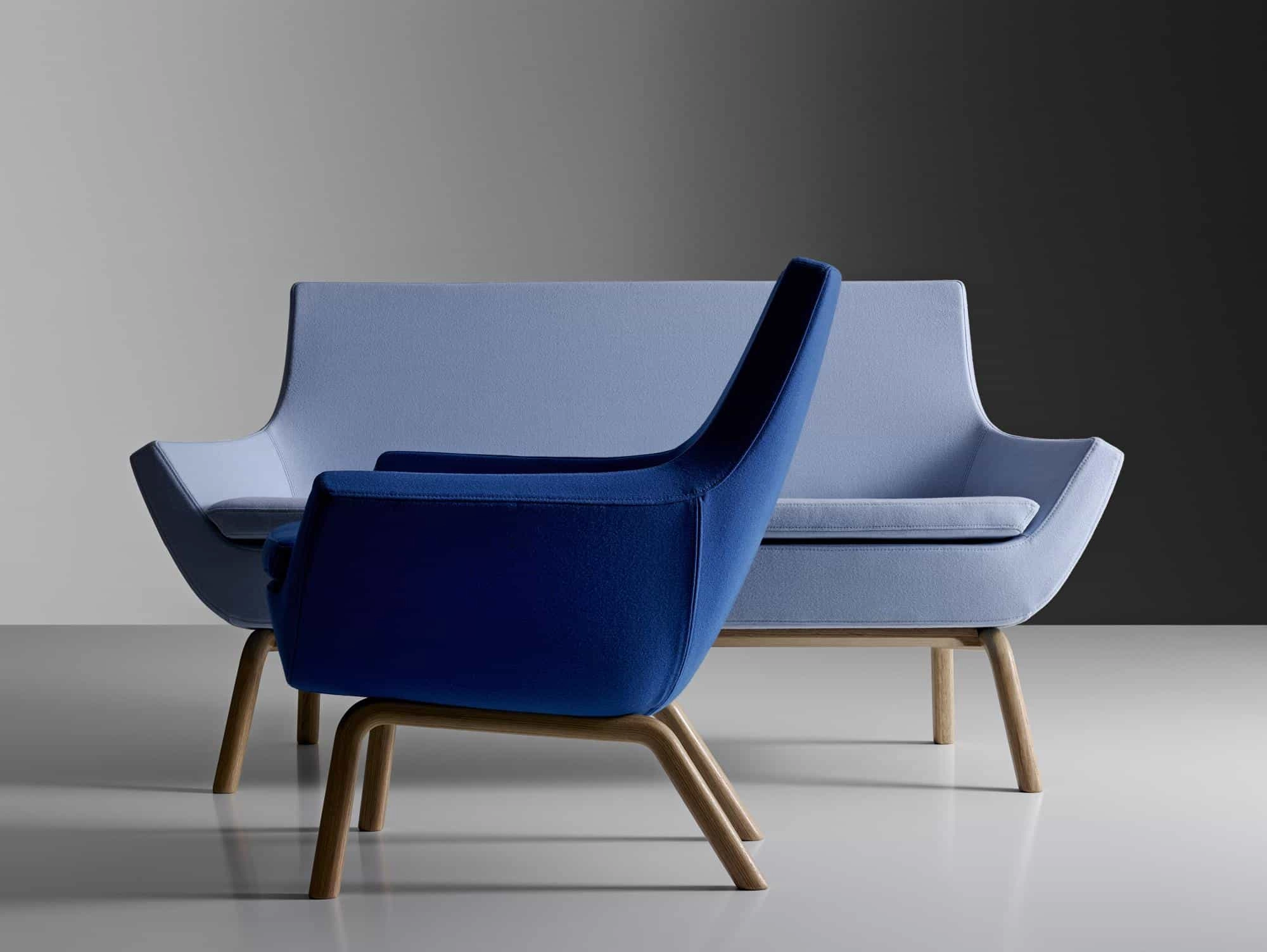 In profile, it looks like a sprinter just about to start a race, but from the front it’s open, flirty and clearly inviting. The brand new sofa and easy chair have attitude, elegance and their very own charisma. We think they are divas!