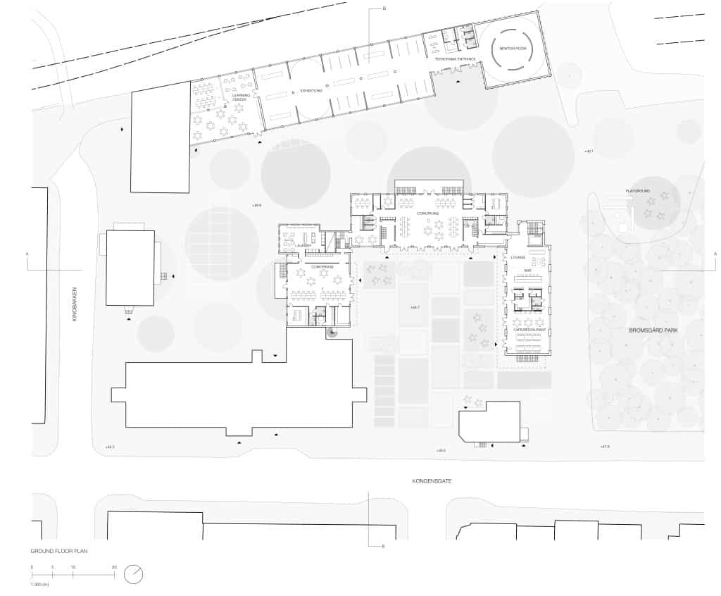 The project subtly works with alternate layers of the scale. One of the very convincing ideas is the layout of the two-staggered form of public spaces: a more formal one to Kongensgate and an informal with new functions on the back which links the town hall to Bromsgård Park.