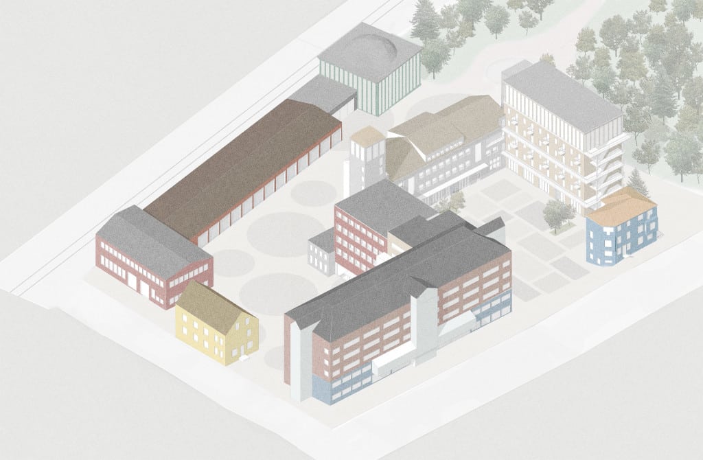 Jury remarks: The winning project On Reflection clearly chooses a step-by-step strategy. The main reason for this decision is that the winners understand the existing buildings as a kind of helpful structural framework which does not need much transformation in order to create two different and new public spaces for the city. In this way, the project succeeds in reconciling the hitherto unconvincing connection from the public library via the town hall to the Bromsgård Park into an interconnected chain of pedestrian spaces.