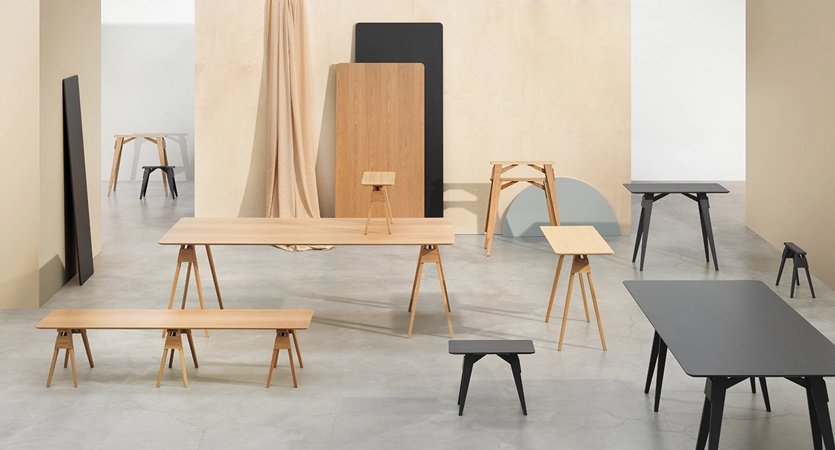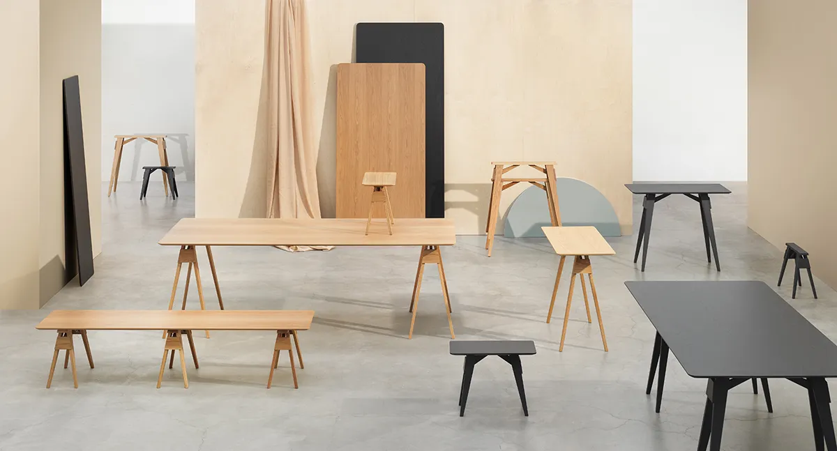 The series was born in 2015 from an idea with classic trestles, which have played an important role in Design House Stockholm’s development of the Arco tables. It started with a desk, which then inspired a dining table, leading to these new additions to the family. The Arco series is now complete with practical tables sporting high or low trestle legs. The idea is simple and functional, building on Chuck Mack’s development of traditional carpenters trestles used by carpenters when adjusting the height of their working tables.