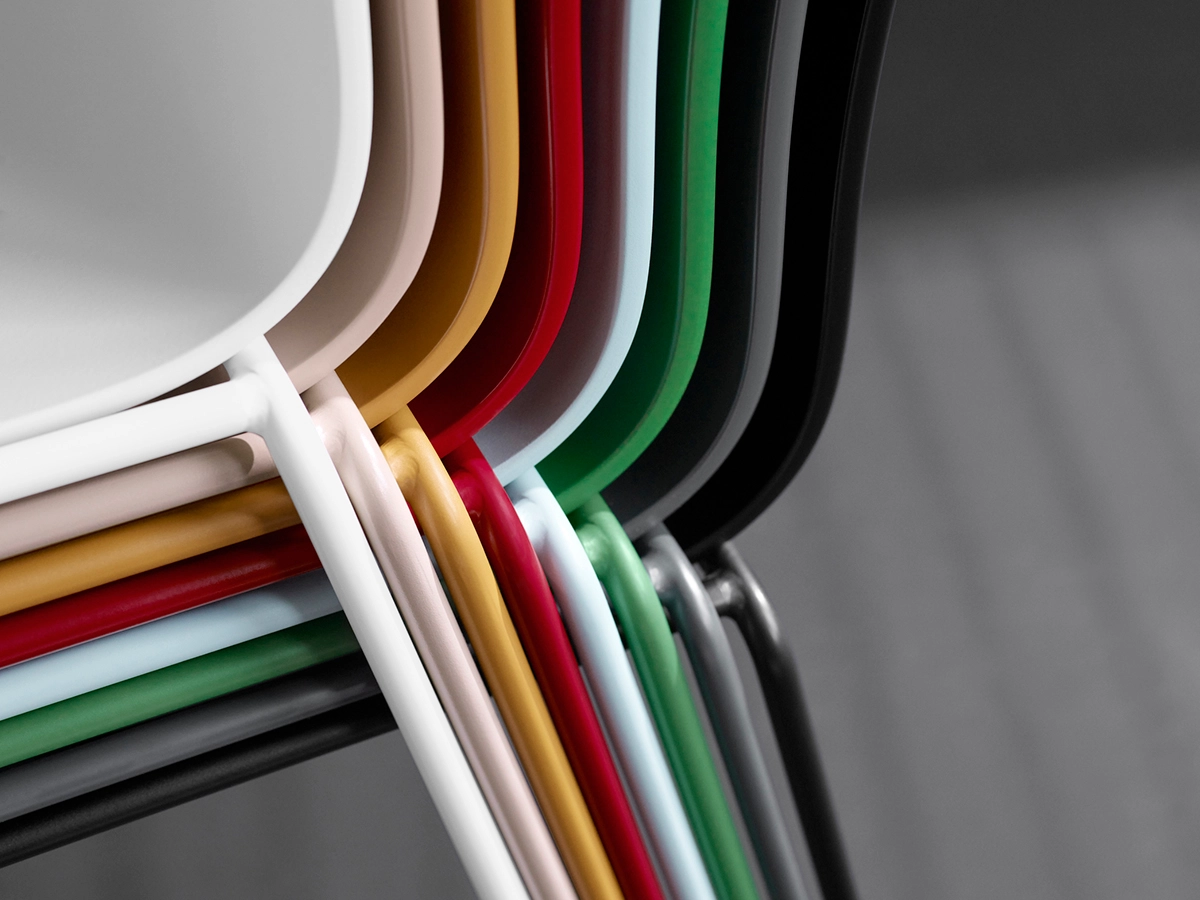 The Chairik series, designed by Erik Magnussen, is a versatile family of chairs with unsurpassed stacking abilities and a clean contemporary look. Uncomplicated, simple and convenient – the Chairik chair is the embodiment of timeless functionality. Now, the rational and clear design of Chairik is complemented by eight curated colours from the Montana palette. The options of Snow, Mushroom, Amber, Beetroot, Flint, Parsley, Anthracite and Black bring a contrasting softness to the chair. Match frame and shell colour to create a monochrome look or mix shell and frame colour for a more playful and customised look.