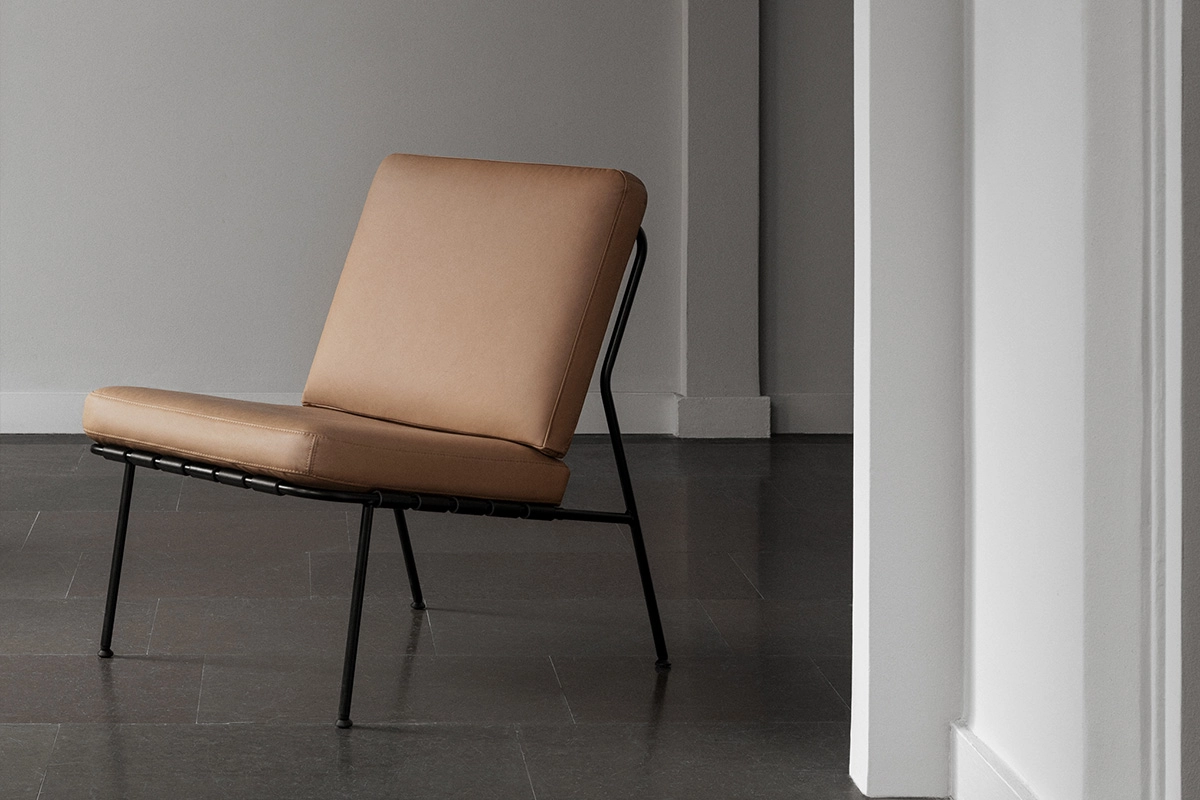 Domus Chair Steel has a black lacquered steel frame. The cushions are available in leather or fabric and sit on a classic braiding of tanned leather. The cushions are made of cold cured foam to ensure long-term comfort and performance. The model has a metal slatted back and no armrests. The chair’s small footprint makes it is easy to position in a room. The Domus Chair has been revitalized during 2020 by Norm Architects as a part of the DUX Domus Collection. It was restored to the range after DUX and Norm Architects browsed through the archive of old classics during a previous collaborative project. The Domus collection also includes the revitalized Domus Chair Wood with matching footstool, Domus Chair Steel and Domus table.