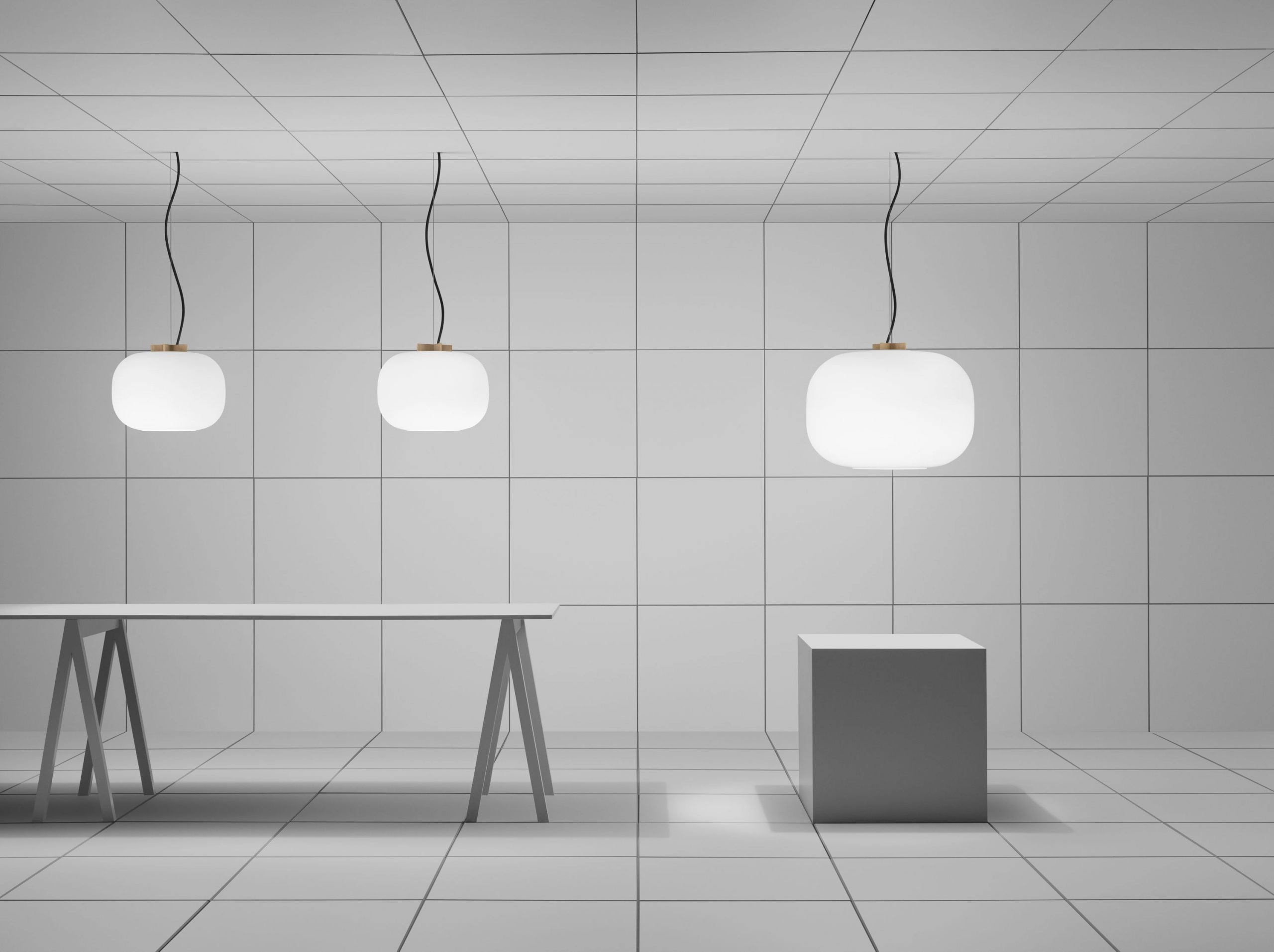 A beautiful luminaire in its simplicity that fits into all interiors, private as well as public spaces with its two sizes and different light sources.
