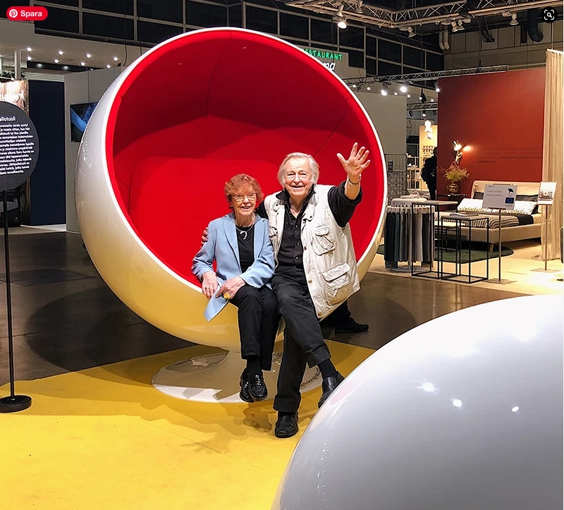 Eero and his wife Pirkko with the Giant Ball Chair at Habitare Fair in Helsinki.