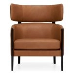 Garbo is an armchair with a clear appearance and fantastic comfort, while not taking up so much volume in the room. The inside is soft and curvy but the outside shows a stricter shape that easily adapts to its surroundings. The tall wooden legs give the armchair its full character. Garbo’s round shape has been created by combining wood, metal and cast cold foam. The horseshoe shape encloses the one sitting and reduces the noise from the surroundings. The shape also makes the armchair ideal in a variety of flooring solutions such as for example groups facing each other, together with a couch or as a solitaire with a small table.