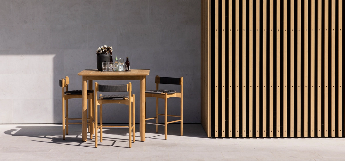 A chair goes through a lot before even becoming a chair. It all starts with an idea of the chair, manifested in countless, rejected, sketches. Here, time and patience is crucial. Eventually, the initial idea has found its true manifestation. Next phase is building prototypes and mockups. Theory needs to be turned into practice. Sadly, this is where most ideas get rejected. The Koster chair made it though. Next step is a skilled woodworker that makes an production prototype of the chair that will test it – thoroughly. More than 50.000 repeats of monotonous static seat and backrest durability tests, followed by heavy load tests. Koster passed the tests. And a standard chair for indoor use in peoples’ homes would have been ready for production. But we intend for Koster to not only be that, but to be for professional use in hotels and restaurants as well. So that means we made it endure even further testing, to meet professional demands and standards. Also, since it’s an outdoor chair, Koster needs to deal with the elements as well. Rain, sunshine, snow, winds. Freezing winter nights and hot summer days. So we put the Koster chair on the lawn and left it there for eighteen months. This is not how people usually treat their garden furniture, but we’re not “people”. We then inspected the chair. The UV resistant rope has the exact same color, two winters and one summer later. The teak has turned beautifully silver grey. And that’s how it will keep looking for many years to come. We designed the Koster chair for design interested people to buy, and keep for a long time. And even pass them on to their children one day.