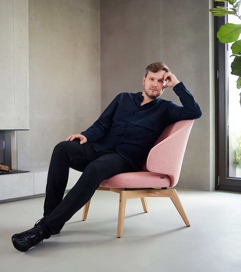 ‘I like the character of the armrest which is spreading its wings in an inviting gesture. The general idea is about lightness and comfort. The chair becomes an oasis to relax. Light and precise, comfy and communicative, ’ Herkner explains.