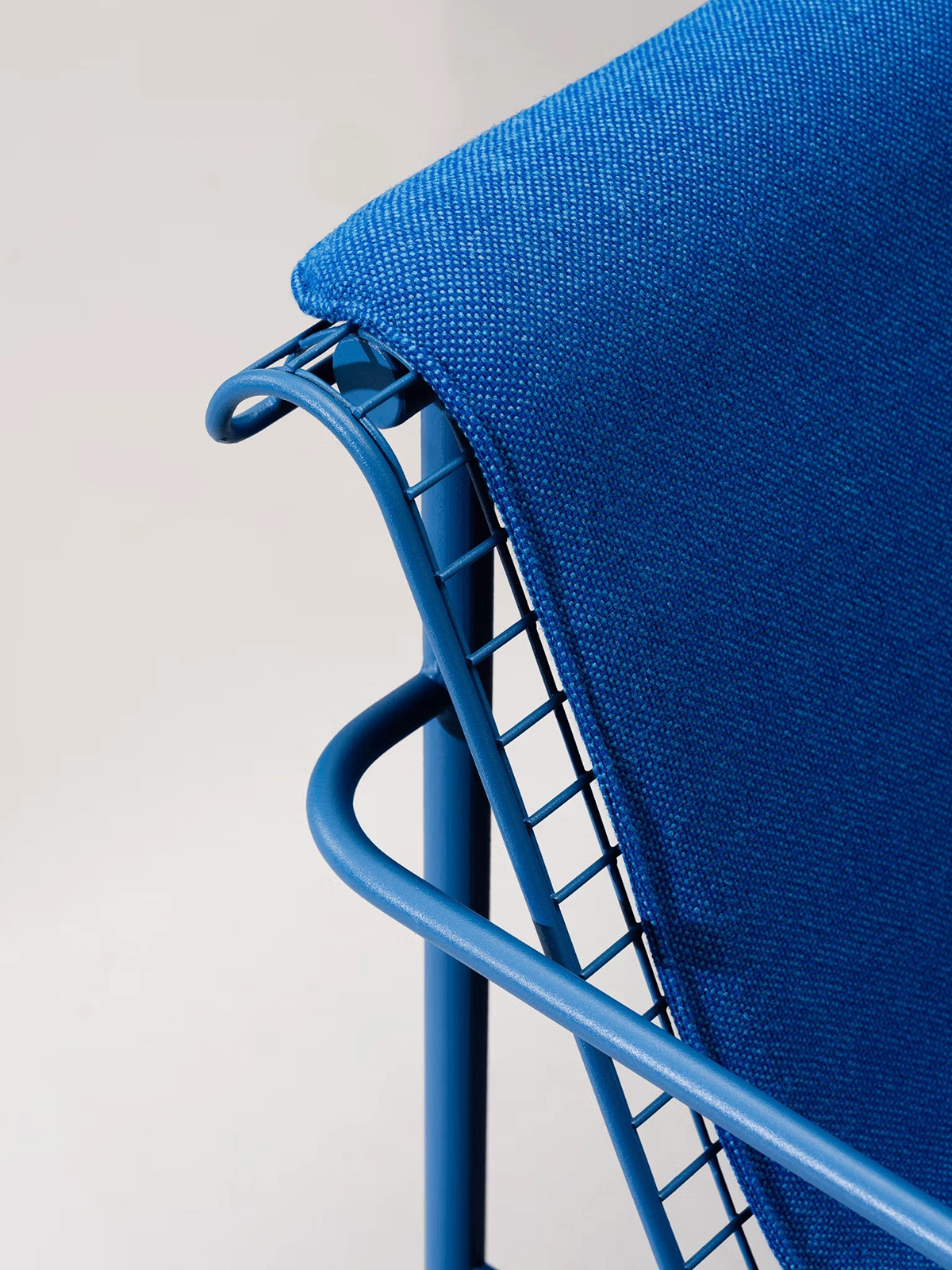 - Materials: Galvanized, powdercoated steel, upholstered pillows