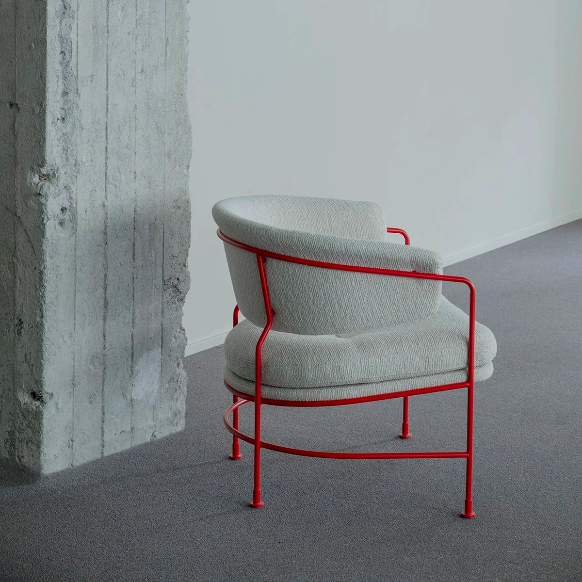 “The starting point was imagining how a contemporary club chair could be. I like the idea of a generous, enveloping chair, but I wanted to make one with a lighter look and feel. Replacing large volumes of fabric and foam with an elegant tube frame seemd to be the answer to me. “