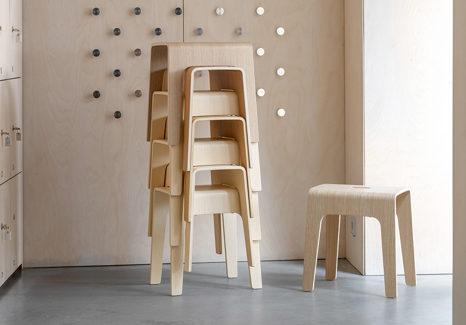 A stool is a tool! Bimbo is a stackable stool made of compression moulded wood. A cut out hole as a handle makes the stool easy to move around. Bimbo can be used almost anywhere one needs a temporary little place to sit or something to balance a foot on when one can´t quite reach and, of course, as a movable small table.