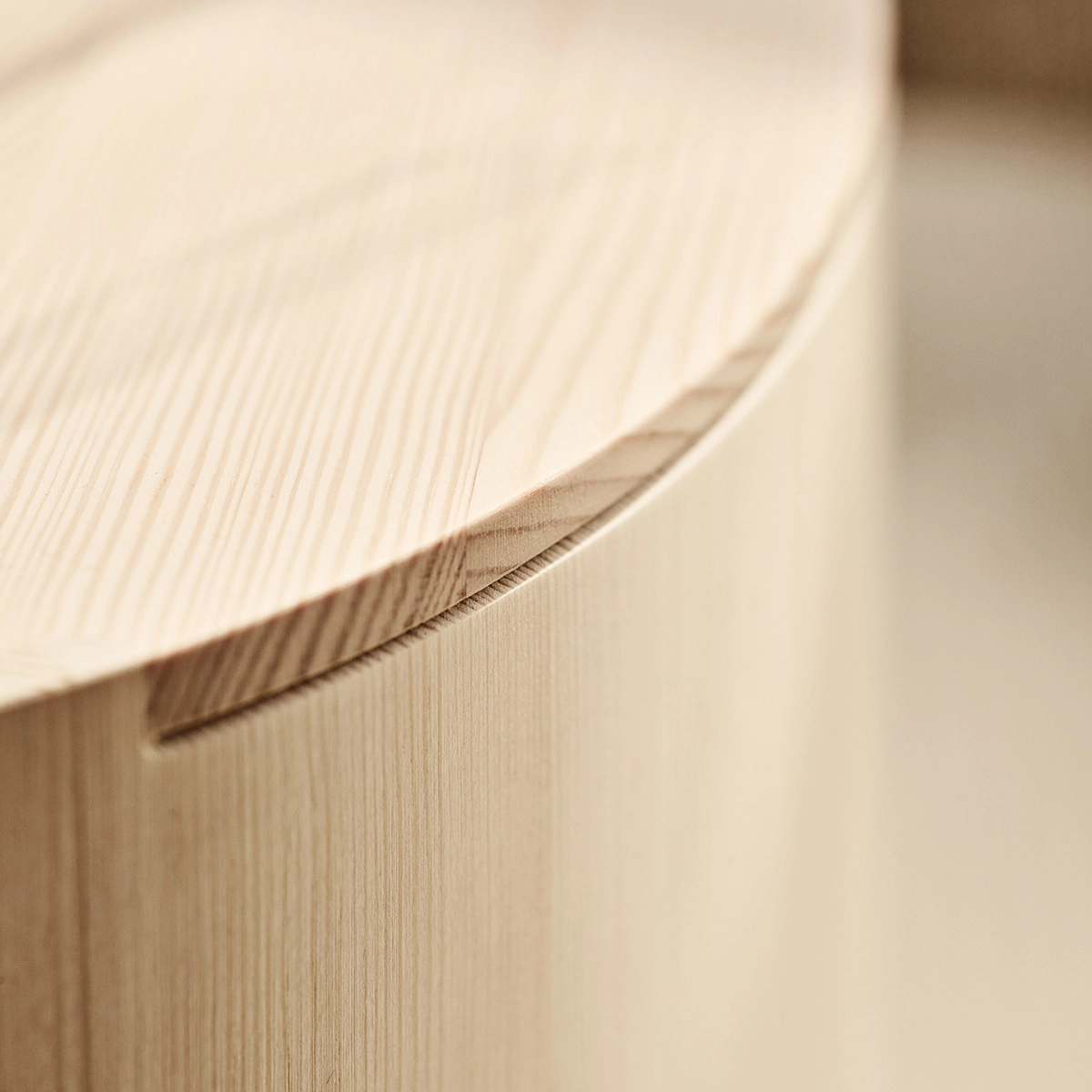 Taburet is offered in two wood versions: Oiled Pine or Oiled Cherry, each displaying unique grain patterns.