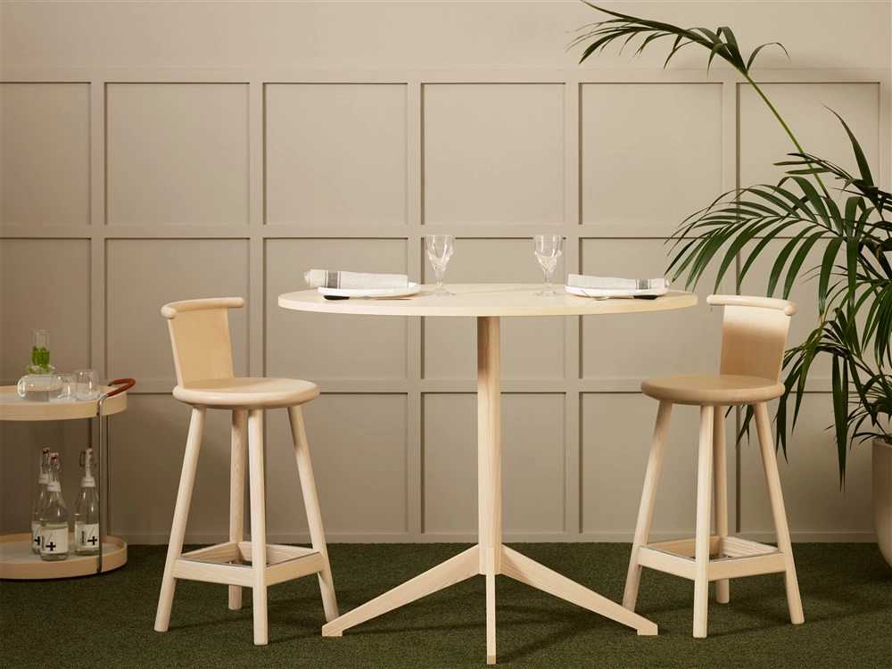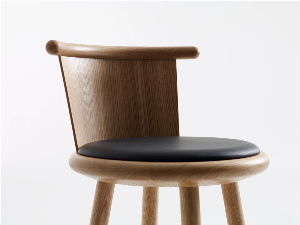 The round seat of Milo bar stool is perfectly symmetrical, which makes it easy to place the stool in any setting and ensures that Milo looks inviting and is fully functional from every angle. The proportions of the seat and the fact that it is fashioned in solid wood mean that it is possible to incorporate a concealed fitting for a swivel function and backrest. The grid-style footrest not only adds an extra dimension of comfort thanks to the flexibility it offers in terms of how and where users choose to rest their feet, but it also contributes to the stability and durability of the construction and gives the stool its own unique personality.