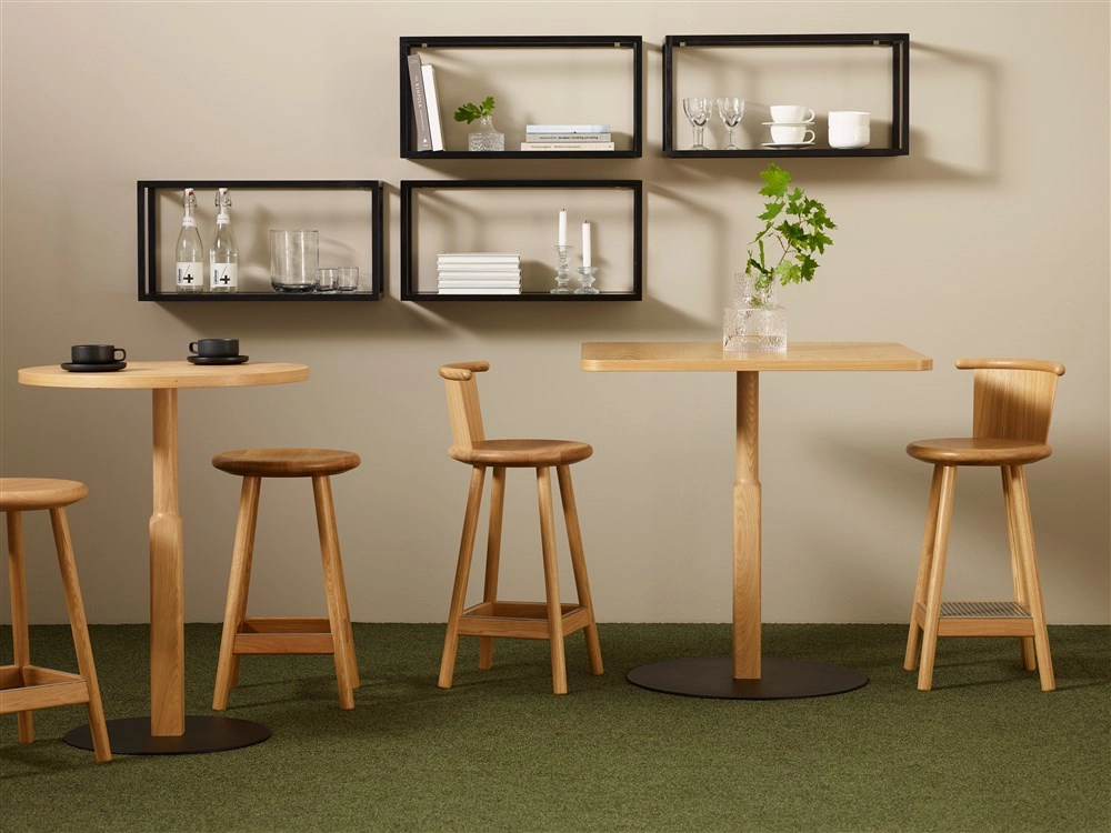 Milo is manufactured in solid oak or ash, finished with standard stains on ash, or white glaze on oak and ash. The footrest has a stainless steel footrest protector and felt floor protectors. Accessories to the stool are: The seat with a fabric or leather cover. The gridy-style footrest comes in a stainless steel finish or lacquered in black or white as standard. The swivel function up to 130 kilos. In the event of future renovation requirements, wooden or covered seats, backrest and underframe can all be simply changed. Milo is a stable, sturdy, hard-working solid wooden bar stool. If you need a truly durable bar stool to partner 900 mm or 1050 mm high tables, Milo is the perfect choice.