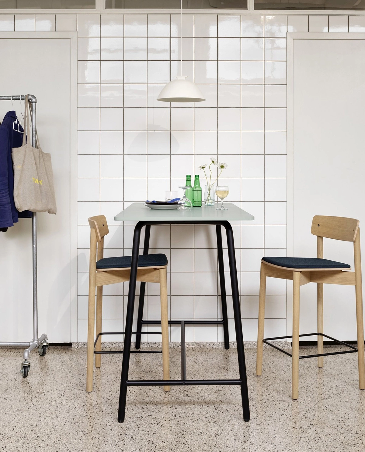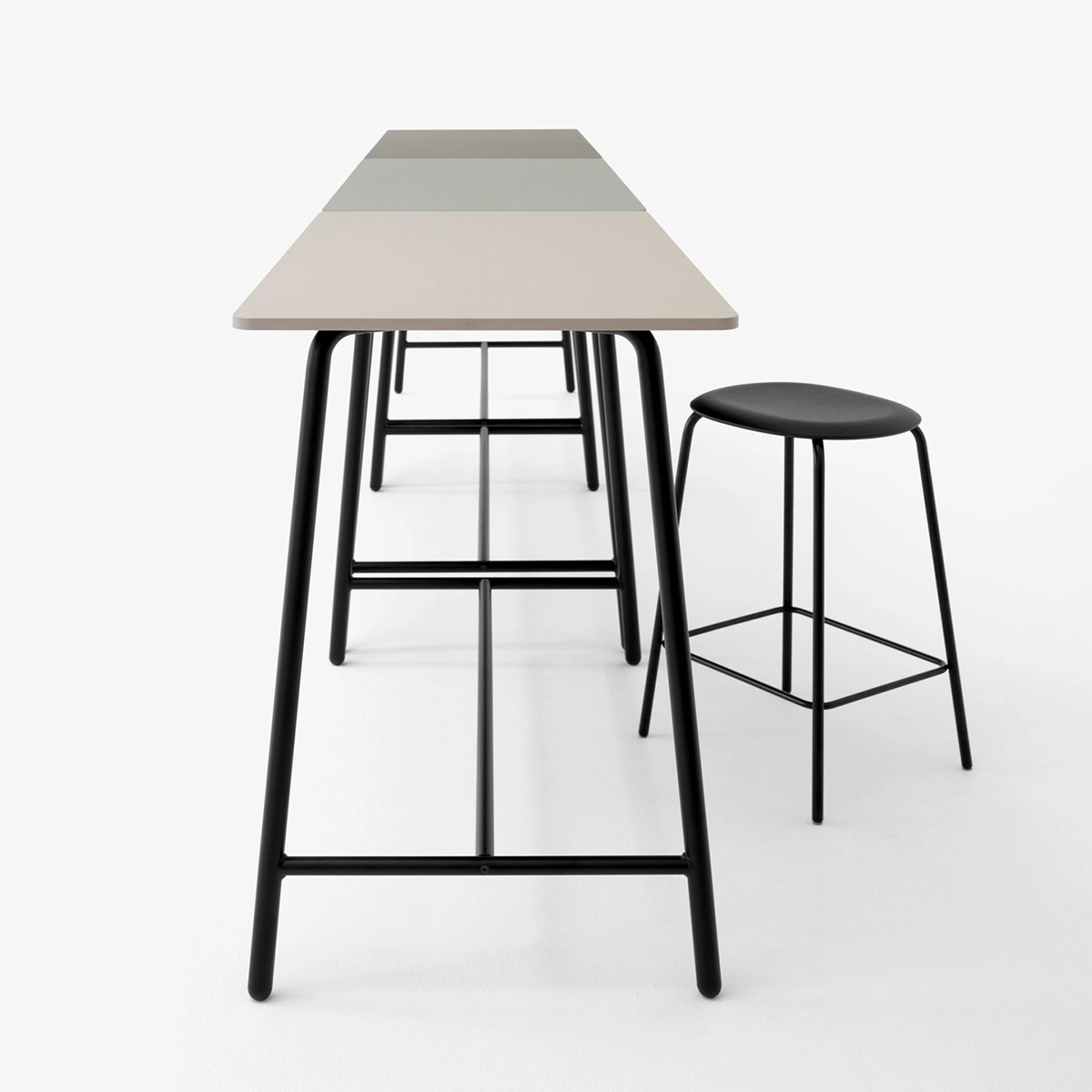 The Studio Table combines versatility with aesthetic harmony, featuring a sleek steel frame for a modern touch and a nano laminate tabletop available in various colors. Its clean, minimalist lines come to life through the precise, graphic clarity of its bent pipe base. Its balanced design seamlessly adapts to dining, work, and social spaces. As with our Studio Bar Stool, the Studio Table is designed by TAKT Studio.