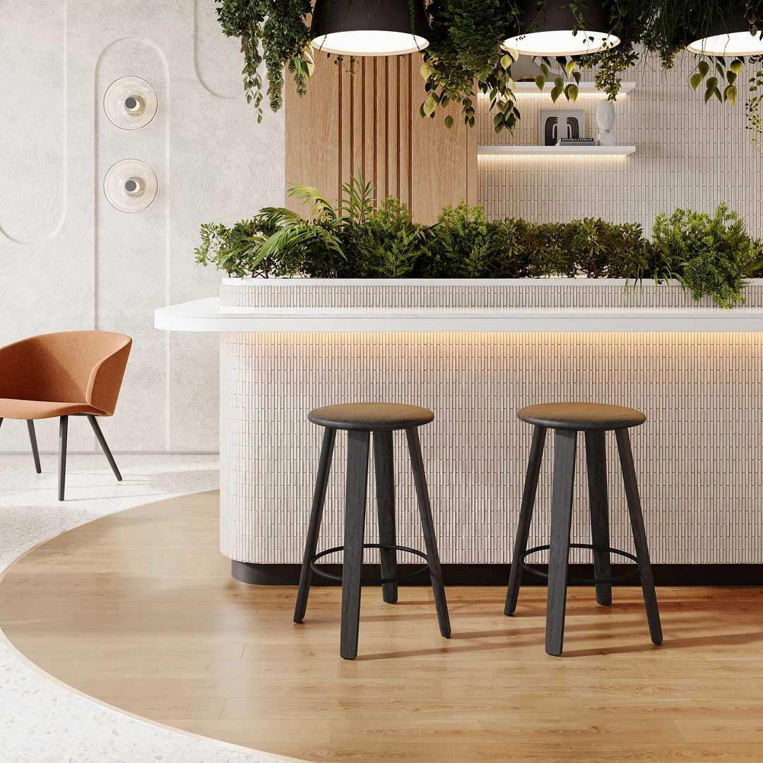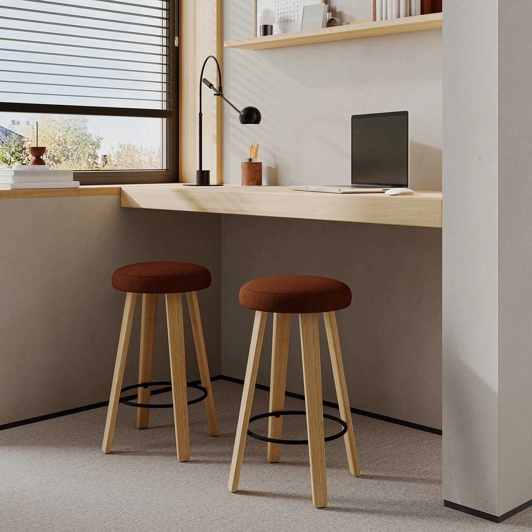 The sympathetic Oona stools are available with both a solid wood and a soft, all-upholstered seat. The solid wood legs follow the homely design language of the rest of the Oona product family. Stools are available in several different seat heights and fit naturally to a wide range of environments and need for use.
