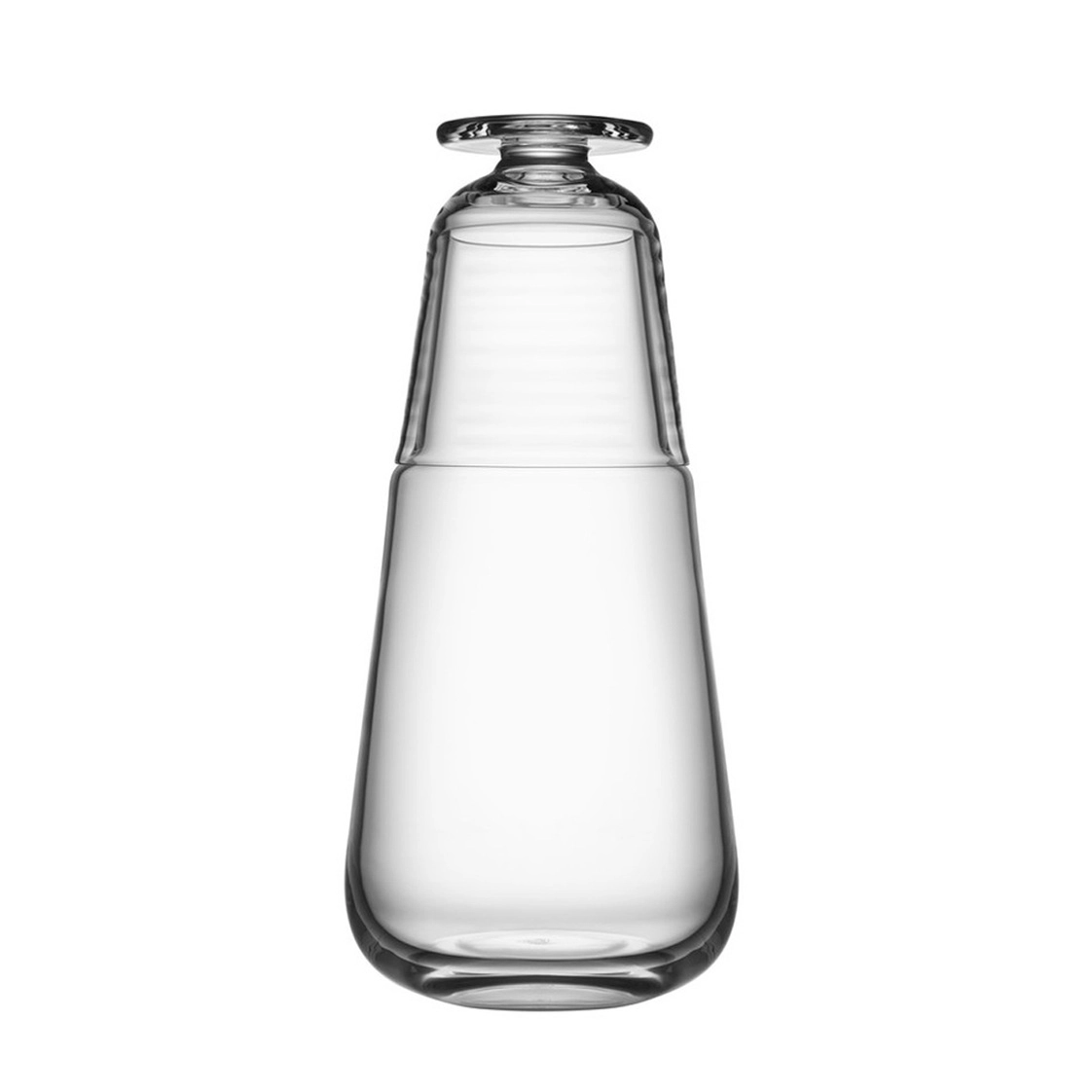 The waterglass works as an informal drinking glass for several other bevrages where the asian streetstyle of drinking cold beer in small simple glasses came to mind. It can also be used to serve desserts in. The small water glass has been complemented with a characteristic night jug that ties the small but effective Viva family together. It is its function as a bottle cap that has given the glass its reffled tactile surface.