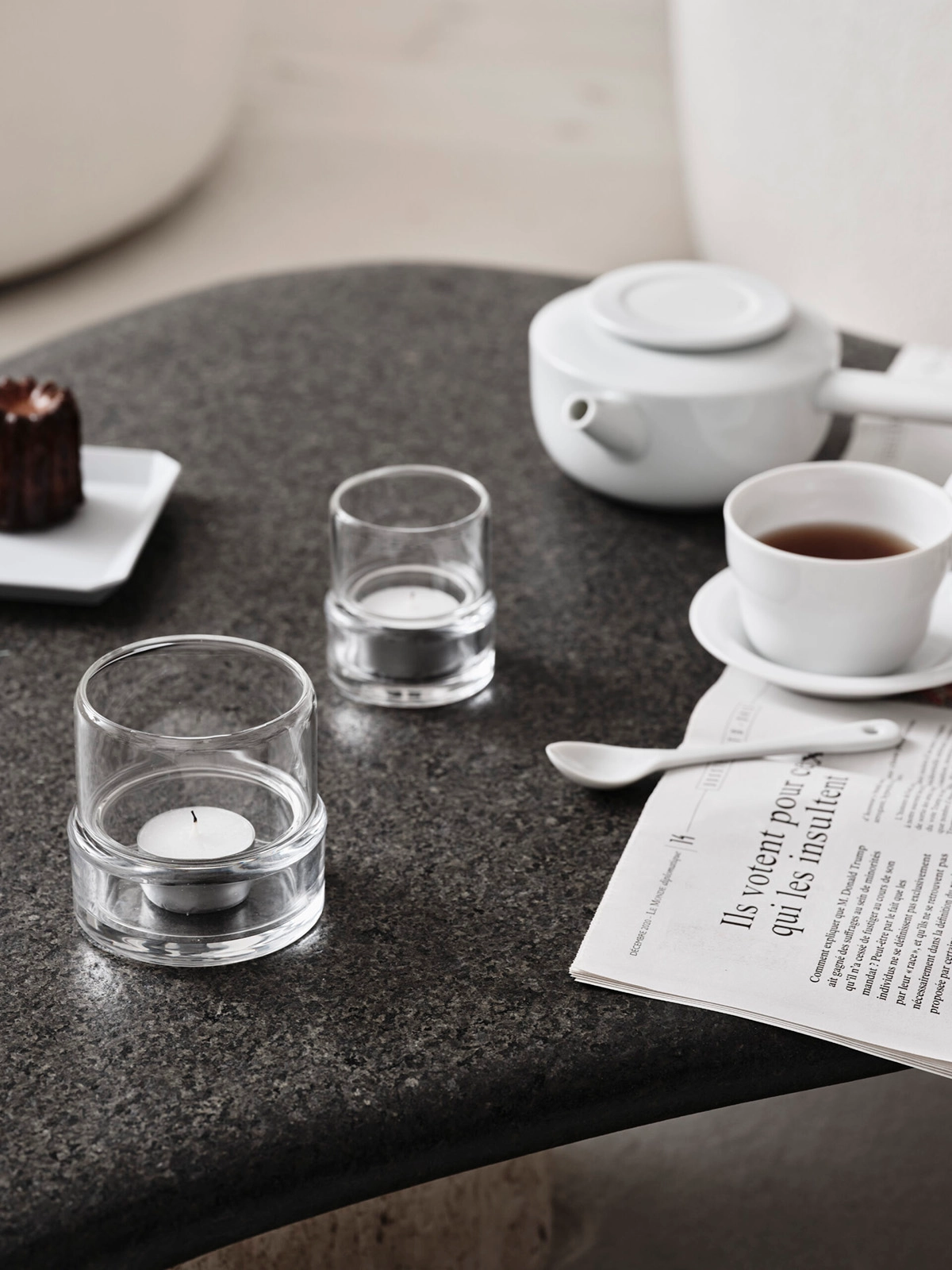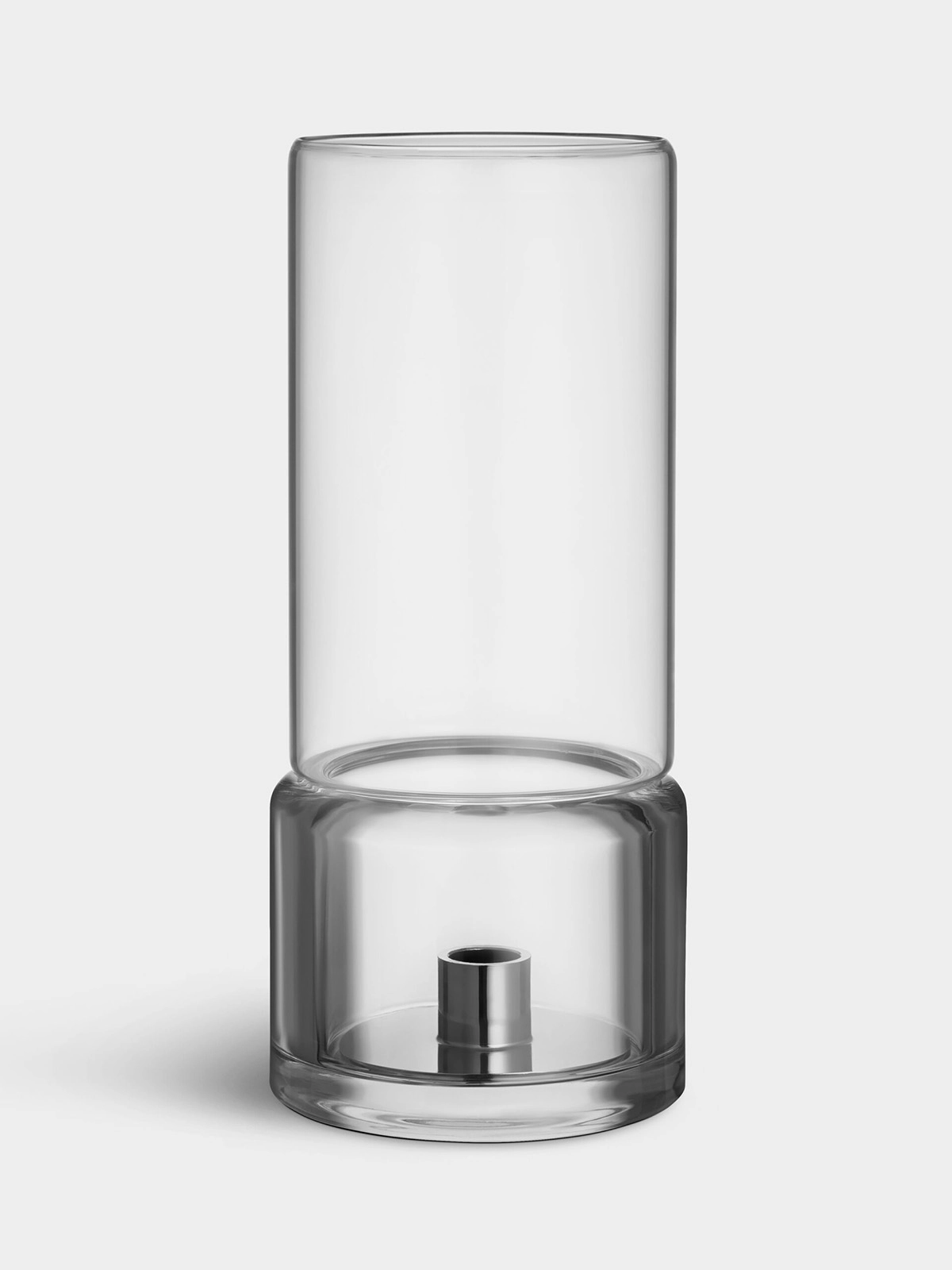 Tou by Orrefors is a collaboration with renowned Swedish design studio Claesson Koivisto Rune. The collection – two votives and one hurricane lamp – is made in a two-part design that combines functionality and minimalistic lines. The hurricane lamp fits both indoors and outdoors and is intended for either pillar candles or classic candles (a functional metal holder is included).