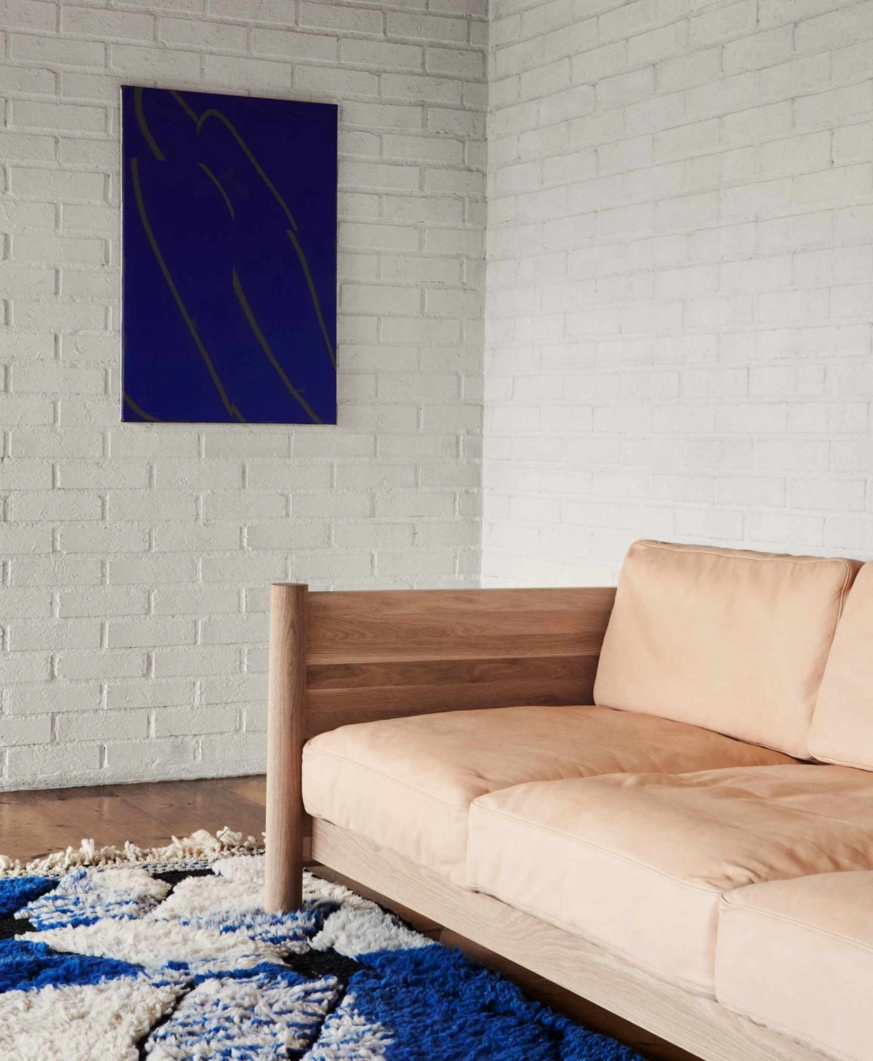 A comfortable wooden sofa, slightly traditional in shape from the front, but a breath of fresh air from the back. A standalone piece that makes an impact in the room and yet is flexible with its calm, natural materials and colour tones. A simple, clear construction: solid cylindrical legs, a wooden bar that forms the sofa’s frame and six cushions in split suede or leather make up the piece. Mia Cullin’s love of elaborate, elegant design solutions is clearly apparent here. Truly a solid piece of furniture with zero superfluity. As an added bonus, the cushions are stuffed with Swedish wool. Quality through and through.