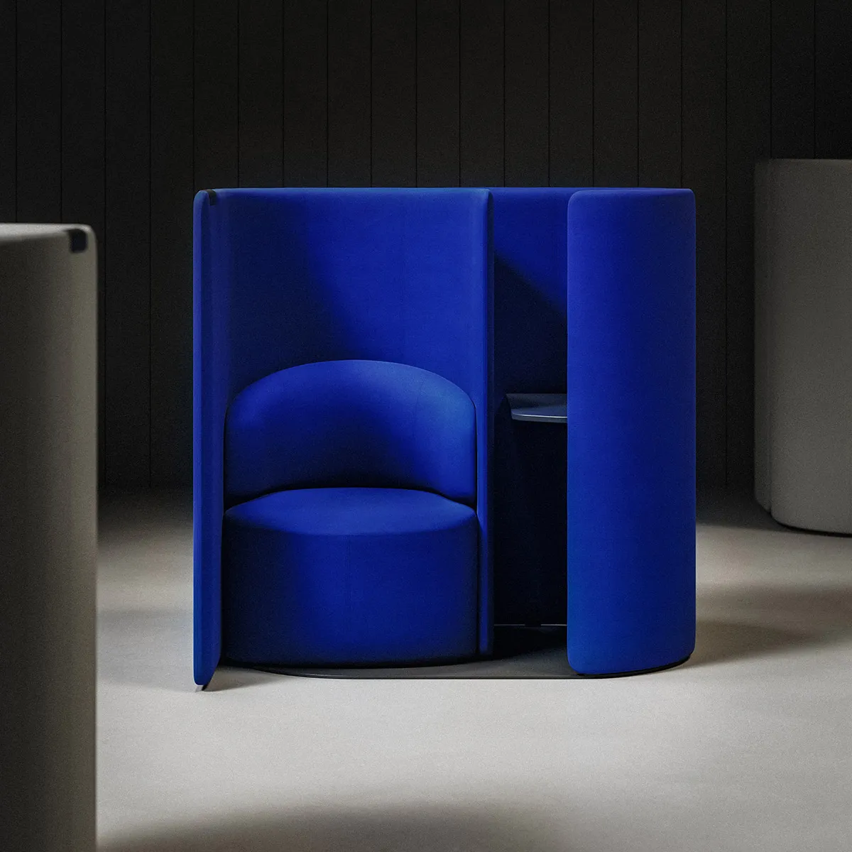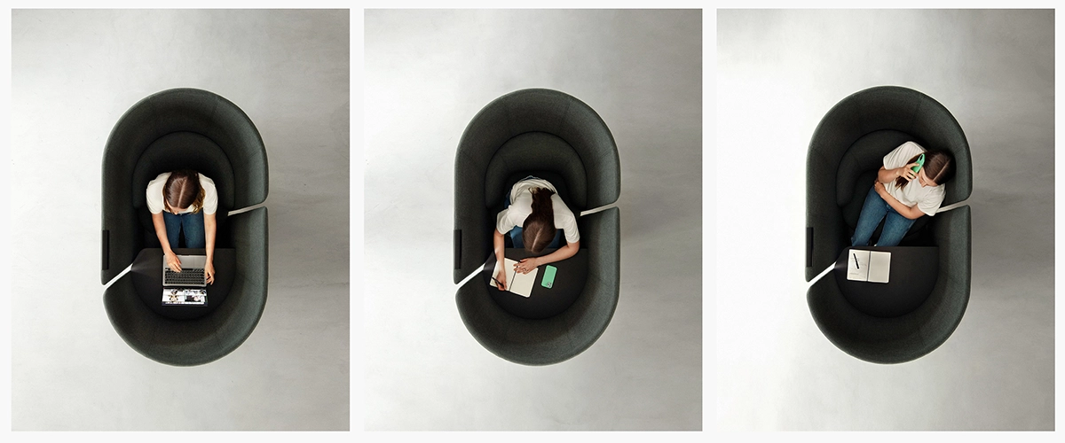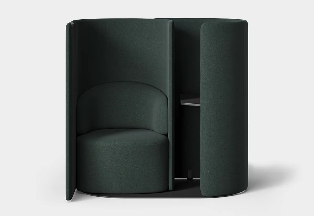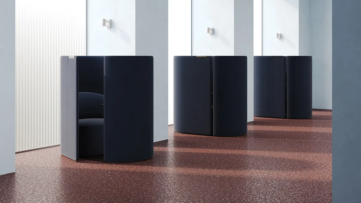 Tulipan is a new type of soft enclosure, a piece of furniture that offers a moment of separateness without the feeling of closing the door on its surroundings. Developed by London-based design studio Industrial Facility in response to the Annual Briefing on ‘defining’, Tulipan suggests a softer form for private space in the open plan. It’s not a room per se. Neither is it a phone booth. Instead, it’s a micro-quiet space where a comfortable seat and a small table work together to form an imminent architectural element.