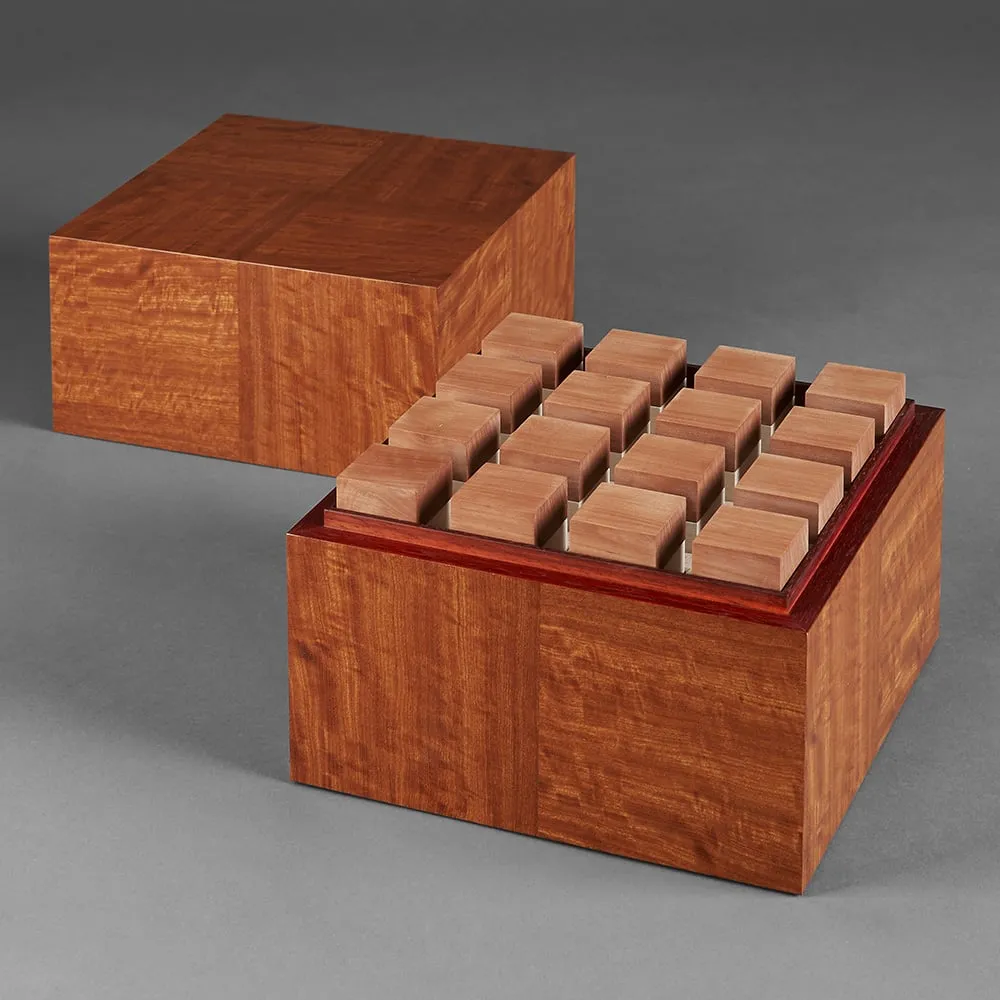 The sensuous aspect plays a major role in the exhibition. And the best way to explore the works is by touching them. We have worked according to some of the principles, which are part and parcel of the history of cabinetmaking. In order to highlight the wood, its finish,surface and processing in a purely technical sense, we have stuck to the craftsmanship, which is the essence of our profession. Everything we do stems from the material, says Finn Killbuck who is General Manager of the carpentry workshop at Amalienborg. For the exhibition, he has created a so-called fragrance cube comprising 16 small boxes, which you can take out and smell. If the scent of the wood disappears, visitors have to plane the wood themselves.
