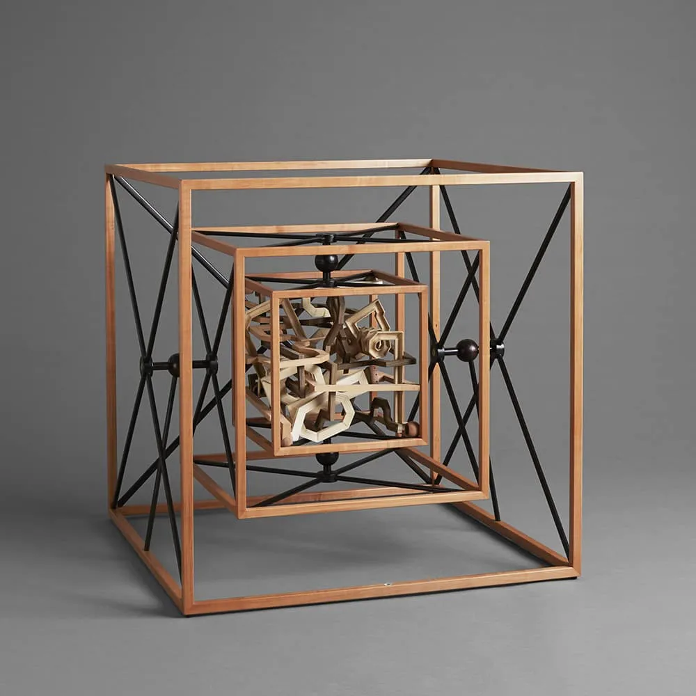 The idea is for visitors to slow down a bit as they enter the exhibition. You need to get really close to the wooden cubes to sense the passion, and the hours of love, blood, sweat and tears that have gone into each and every work, says the cabinetmaker, Teis Dich Abrahamsen, who has made a ball track – for the exhibition.