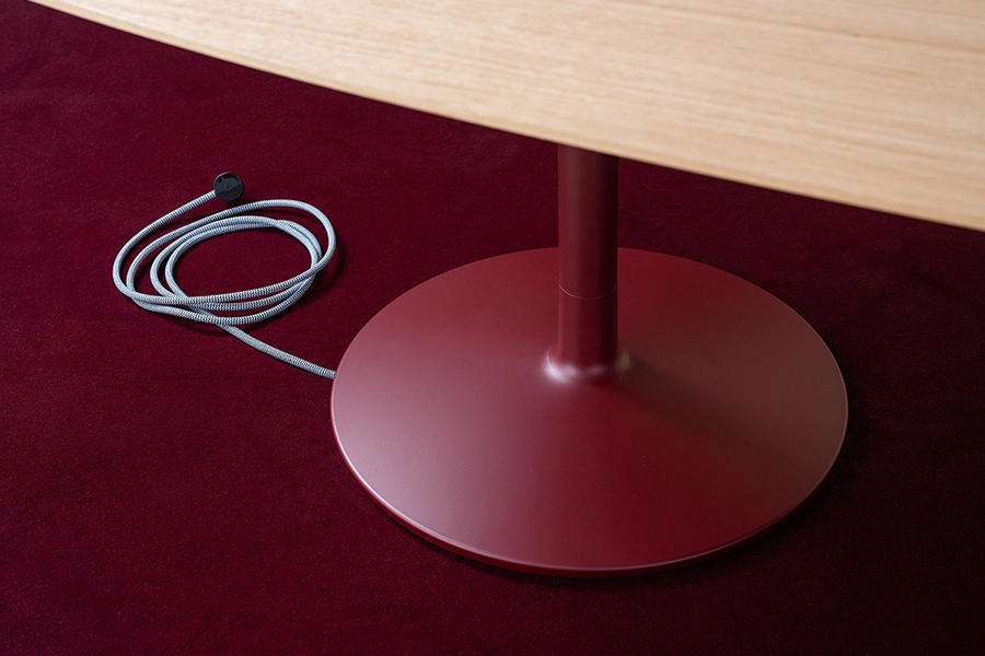 Uni Large conference table is available in several formats and finishes, tailored to modern meeting places. Introduced now are a circular base and elliptical table tops which further enhance the flexibility for different environments and types of meetings. Stand in Colours by Materia powder coating. Accessible options are a cable lid and electrical/USB sockets.