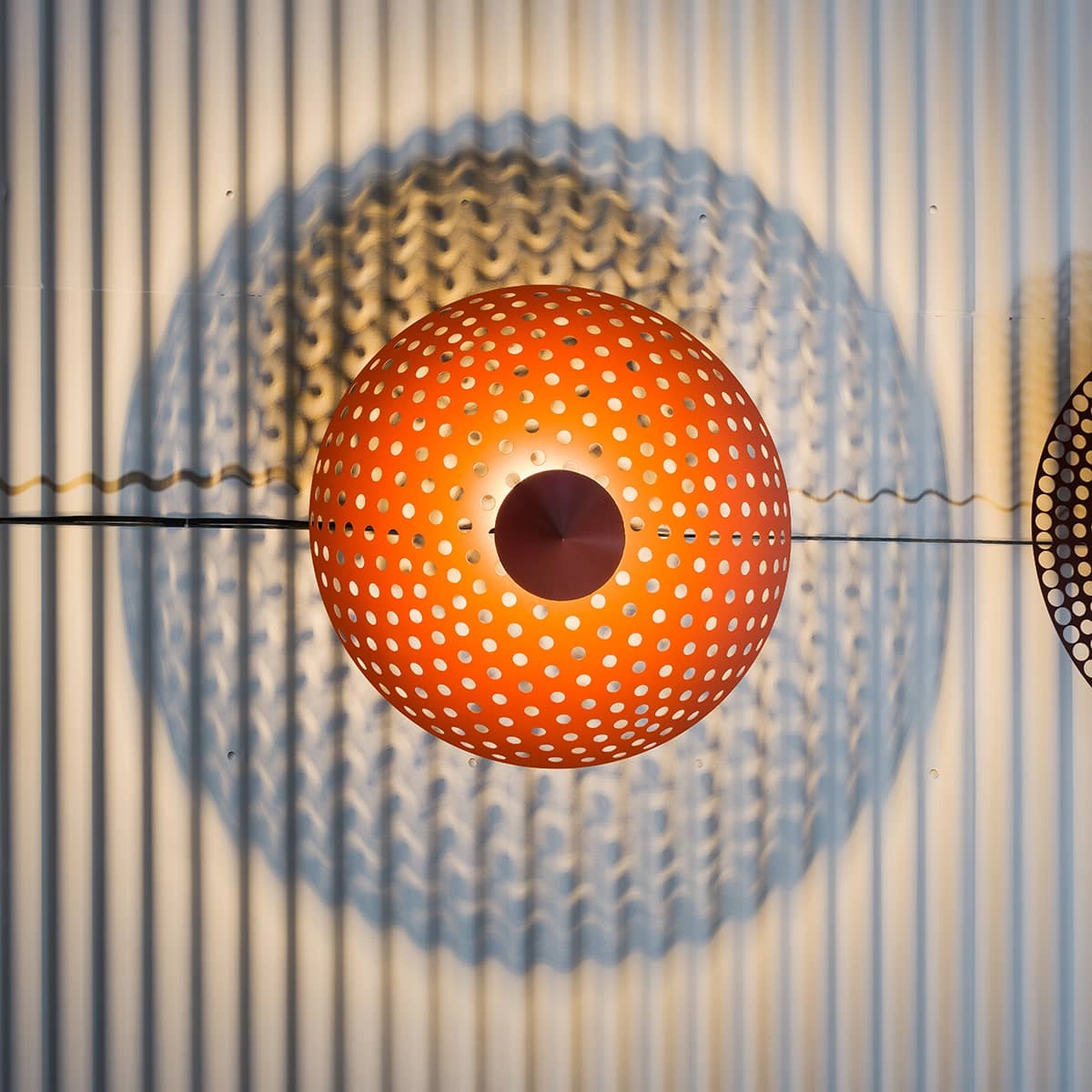 Originally developed as an outdoor luminaire for Victoriagården in Gothenburg, Sweden, with Wallenstam and Bornstein Lyckefors, it offers a feeling of space and room while also creating an effect of being a ceiling as well as of creating a starry sky.