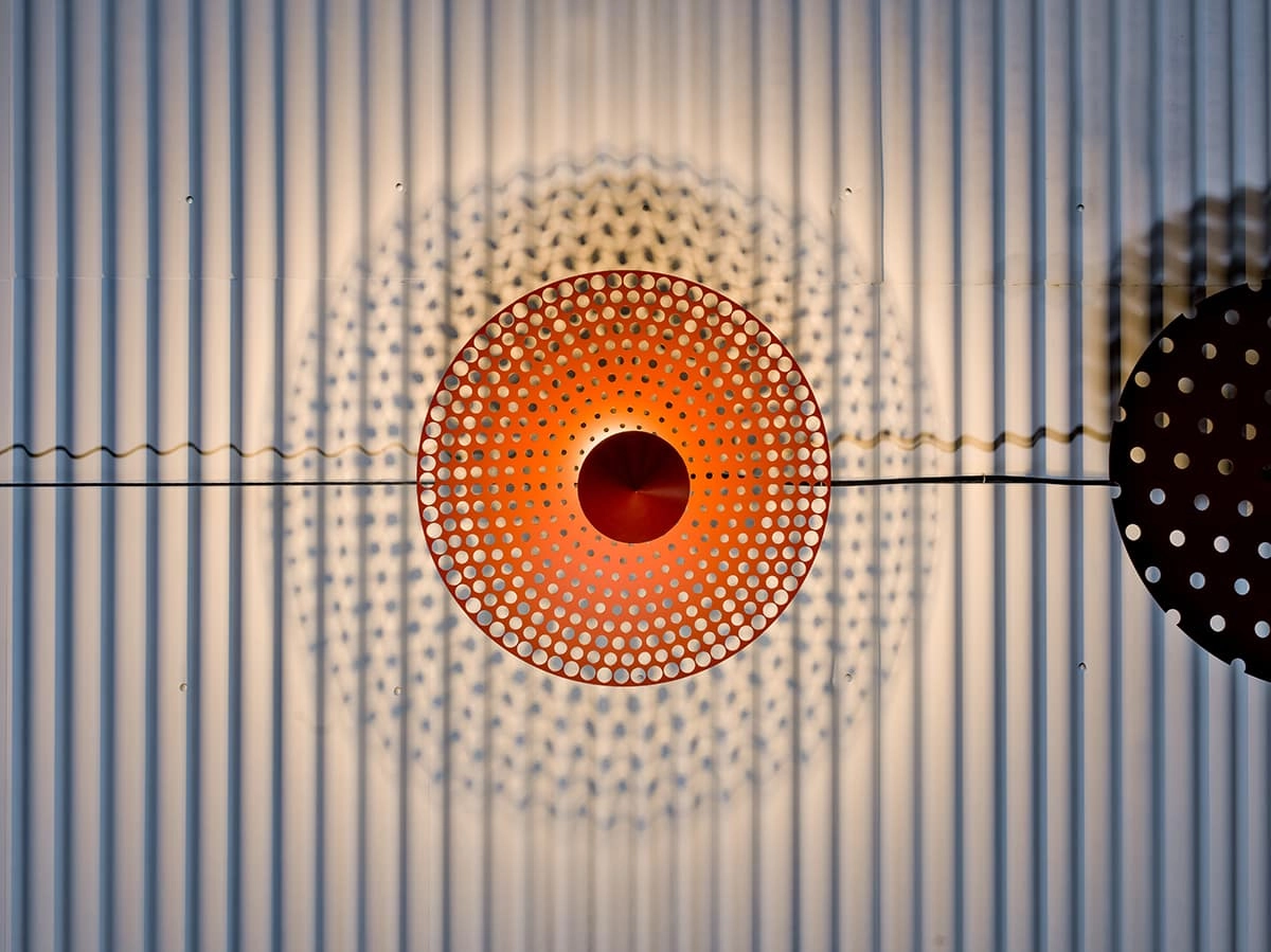 The ”Original” has a pattern that allows for more light to be reflected downwards. The ”Flat Sphere” creates an illusion of being a sphere, by still being completely flat. The ”Fade” centers the reflected light, while allowing for more light to seep through the further away from the center it gets´.