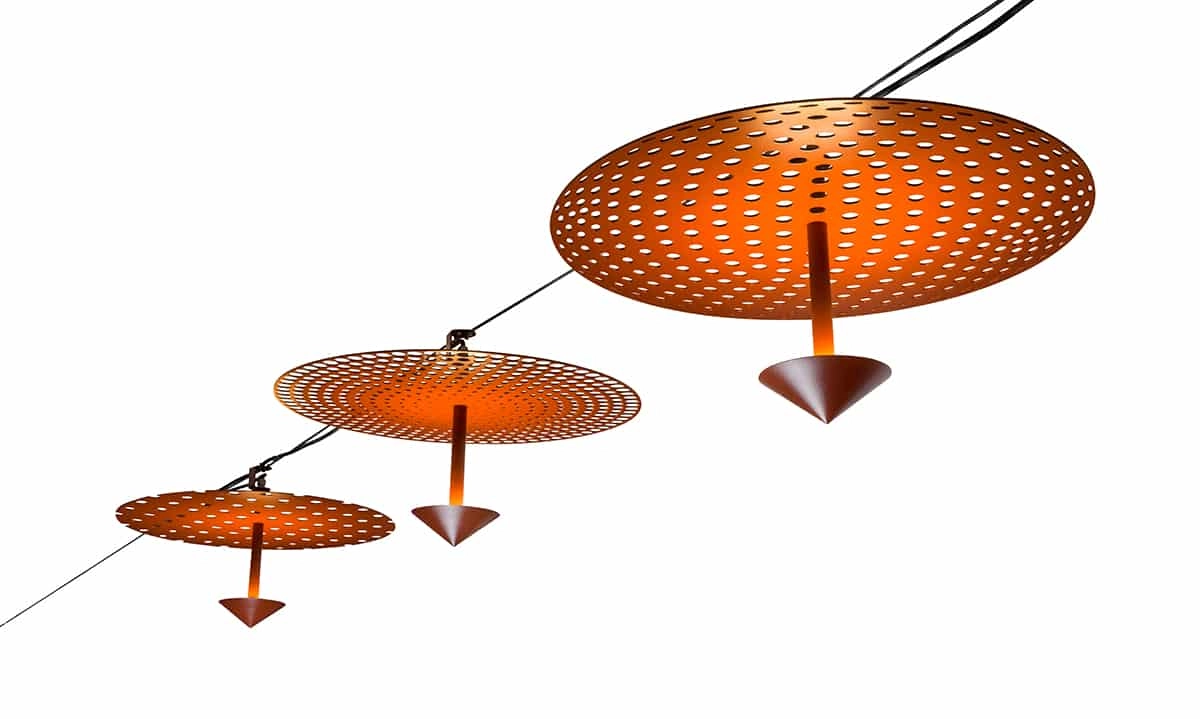 Victoria is featured as and exterior- as well as an interior luminaire, with the possibility of hanging luminaires either as single pendants or in a row by catenary suspension.