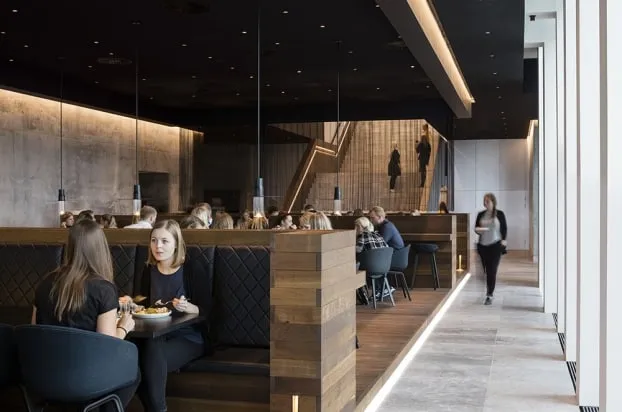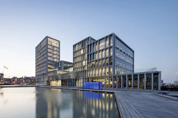 The office complex comprises a varied flotilla of buildings at different levels connected by a series of outdoor spaces, e.g. courtyards, terraces and roof gardens. The mixture of office buildings and outdoor spaces creates the impression that this is a town within a town. The complex, surrounded by canals and lakes on all four sides, forms the entrance to the new, urban district on the waterfront in Aarhus, Denmark.