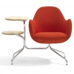 Wilmer is a hybrid between a dining chair, an office chair and an easy chair. And was in 2011 when the unequal Wilmer with one high and one low armrest arrived, the first of its kind. Wilmer retains all the advantages of the various chairs that are traditionally used for “active sitting”, such as the higher seat height and the compact size. But it combines these with the upholstery of an easy chair to provide a more relaxing, more comfortable seat. A comfortable upholstered conference chair or a neat little easy chair depending on the context in which it is used. Wilmer C has four legs, but can also be fitted onto the same under-frame as Wilmer T and Wilmer S. Now that Wilmer has started a family it might continue to grow, so keep a lookout!
