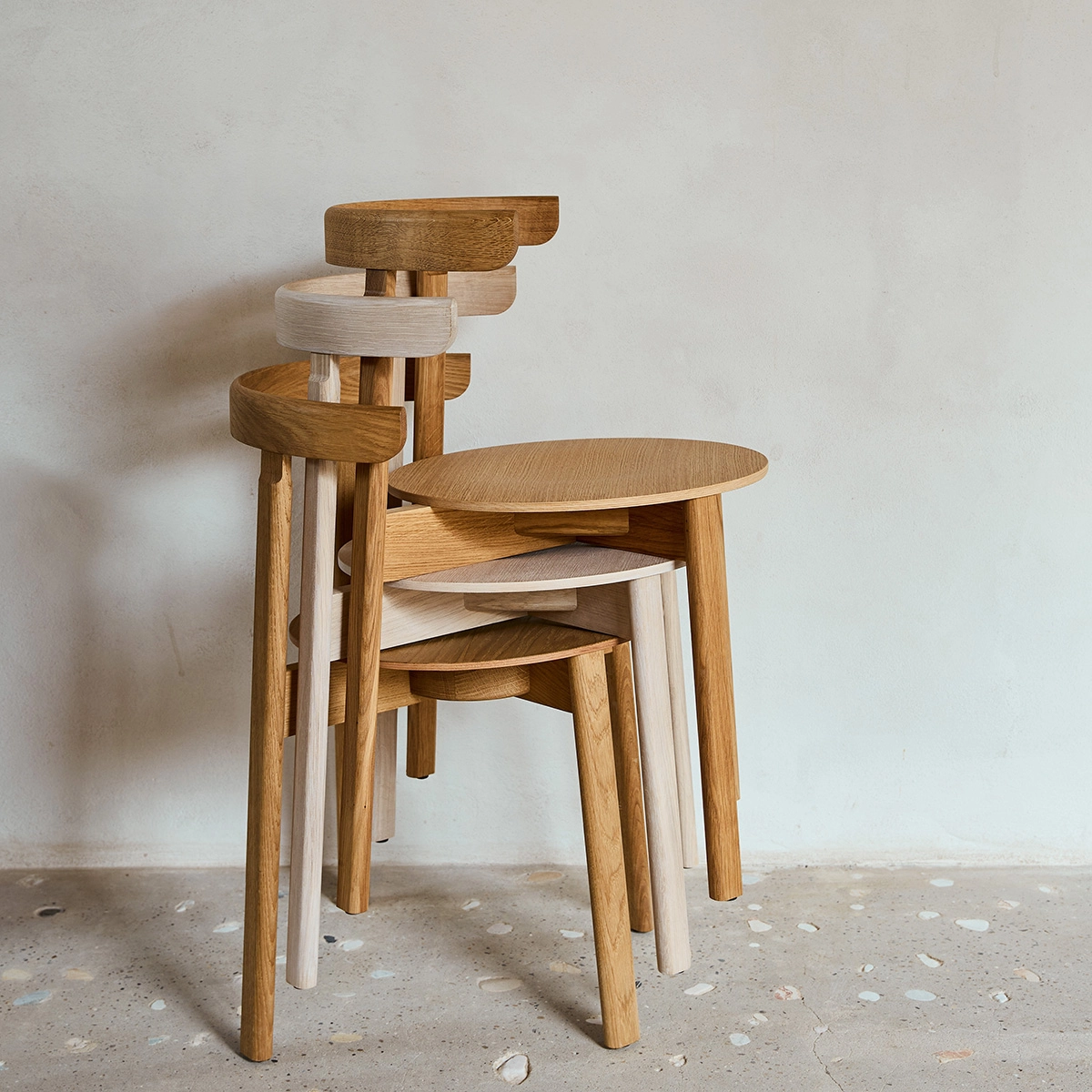 Lunar Chair is named after its resemblance to the moon, with a seat shaped like a full moon and a crescent-shaped back. It is made of FSC-certified oak, stackable and can be hung on the edge of the table. The wooden seat rests on an X-shaped structure that provides optimal stability and supports the chair’s light expression. Lunar Chair is also available in a padded version upholstered with Nana Ditzel’s immortal Hallingdal 65 fabric from Kvadrat in four variants. The chair has a rounded and inviting form and a light, almost ethereal character.