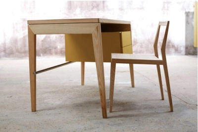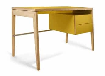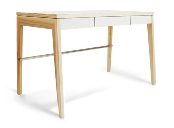 Desk with great lines. Available in several different designs in ash and walnut, and durable surface laminate in eight standard colors.