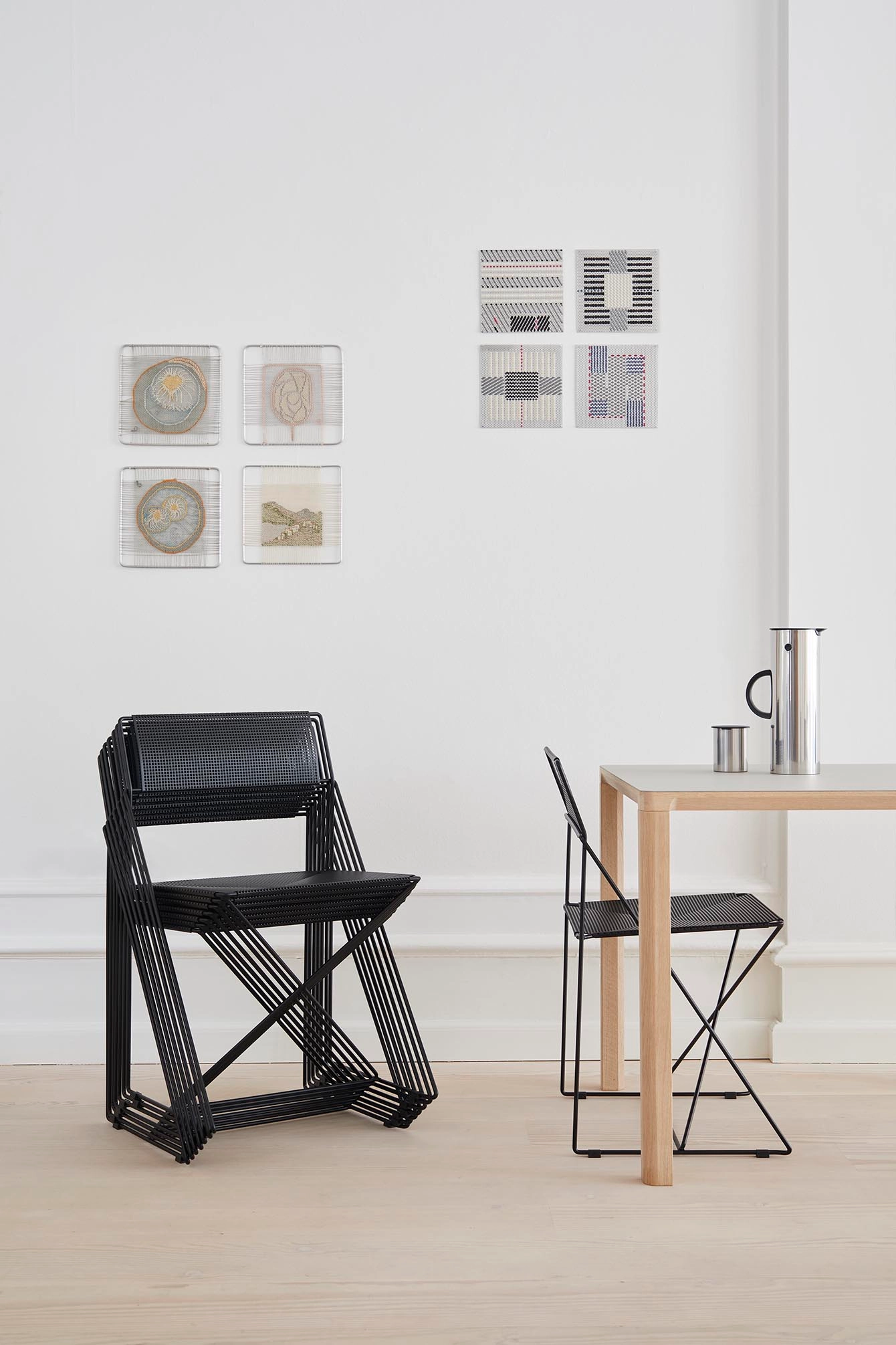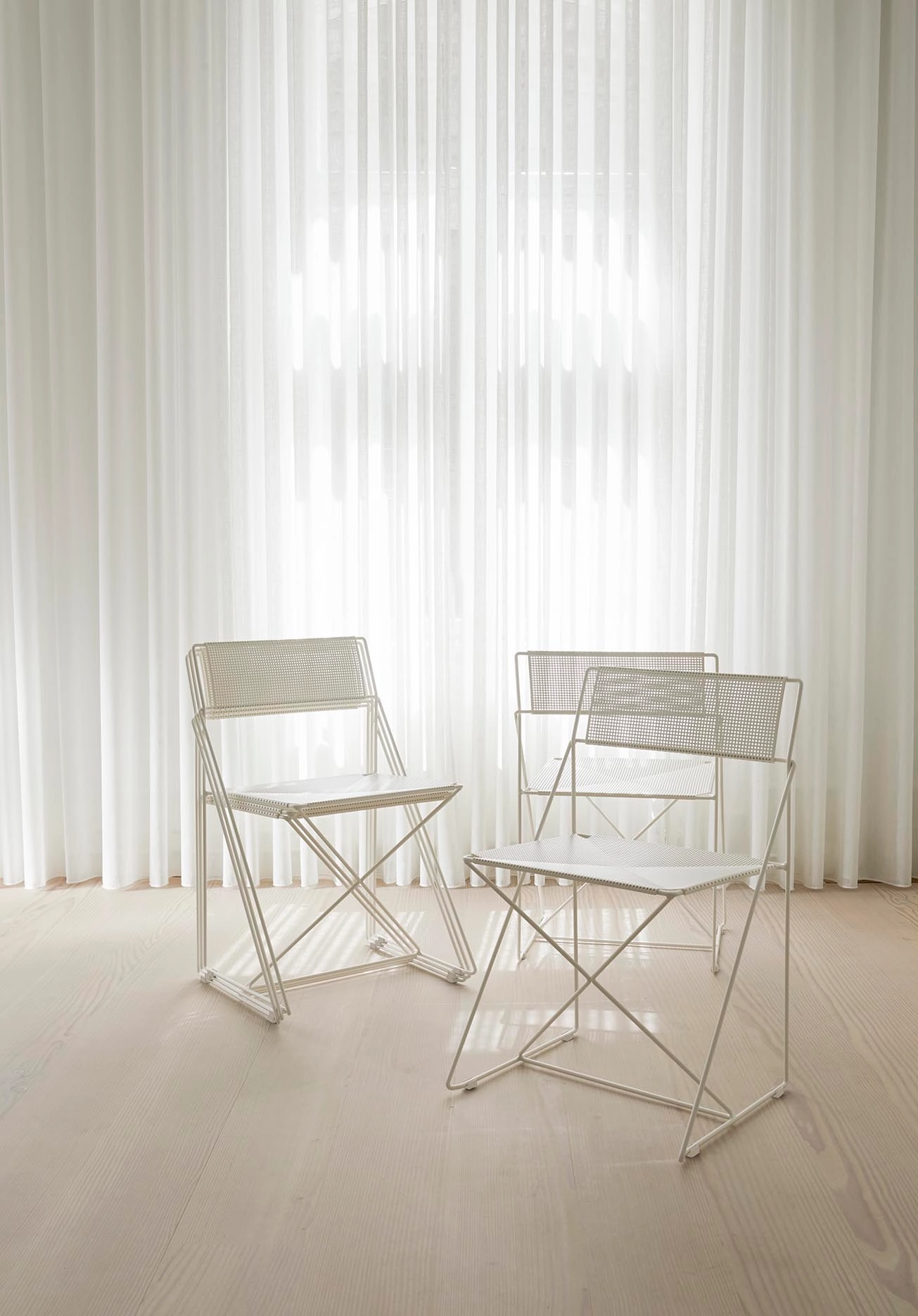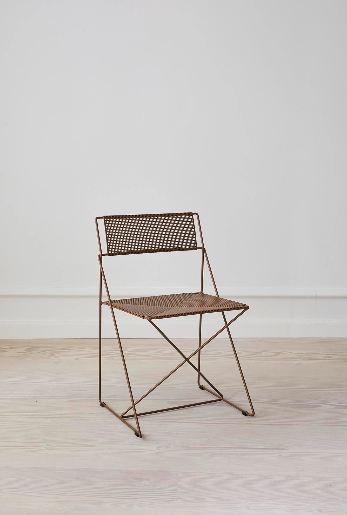 X-Line is an iconic chair designed by the Danish architect, Niels Jørgen Haugesen. The construction is based on a simple and logic design – where the iconic X plays the central part of the chair’s function, strength and stability. The thin steel wire gives the chair a beautiful industrial look, and makes it suitable for many different spaces. Since the chair was first presented in the late 70s, it has been admired by architects and creatives worldwide. Available in classic chrome and 4 monochrome colours suitable for outdoor use. Matching table available.