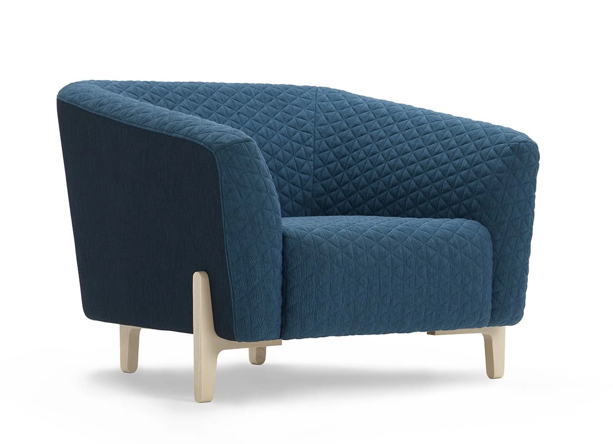 Every angle and element in this sofa and easy chair has been carefully thought out. Quilted textile covers the soft seating, which rests on a delicately shapen wooden frame. The size, appearance and function make Young suitable for public spaces and hospitality areas, as well as offices and domestic spheres where space is limited.